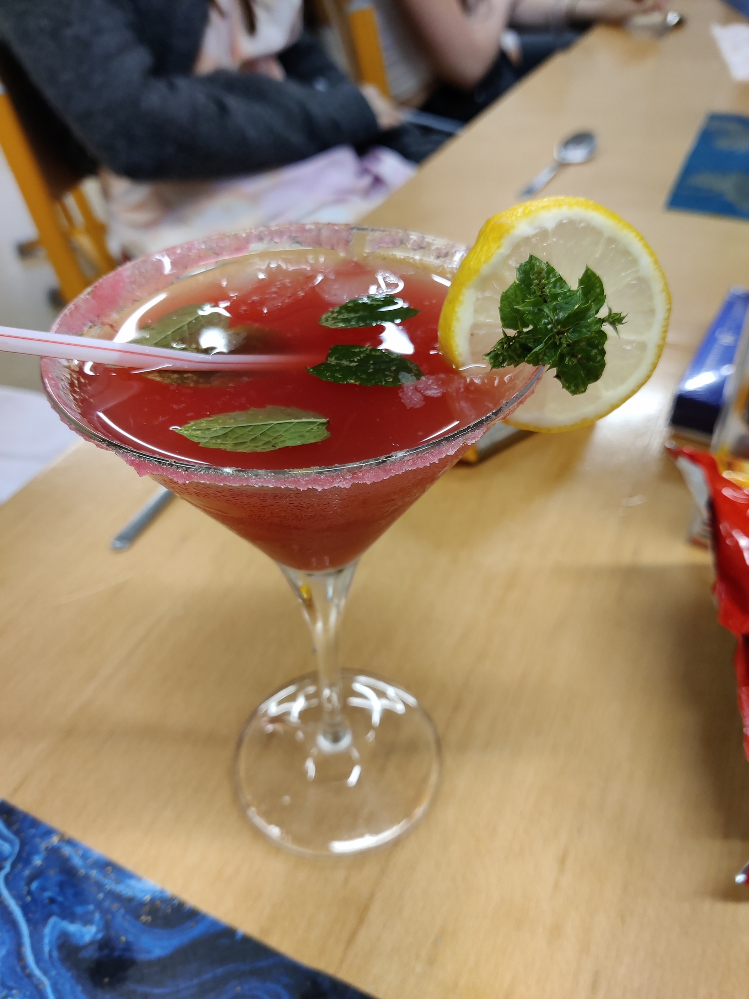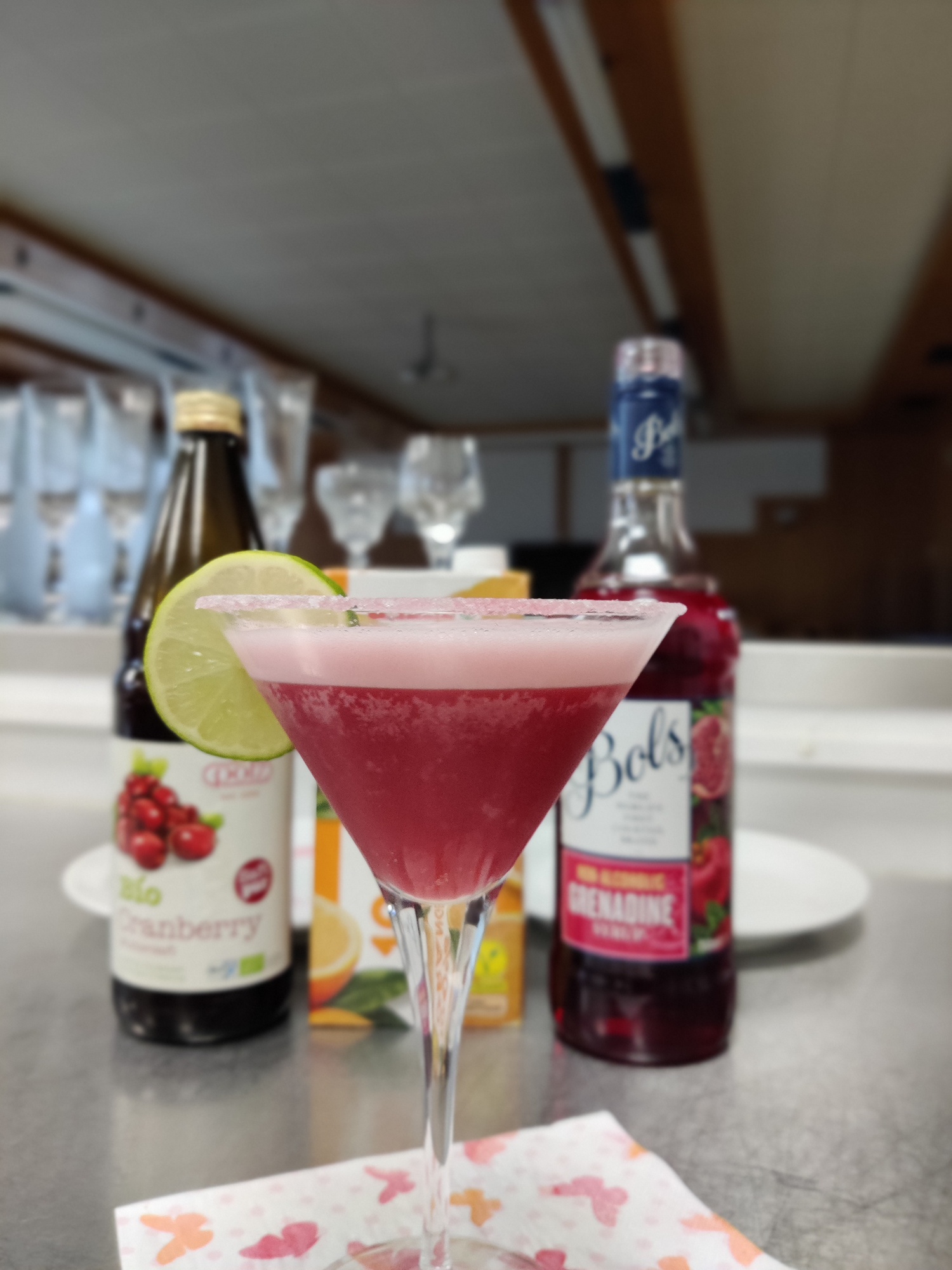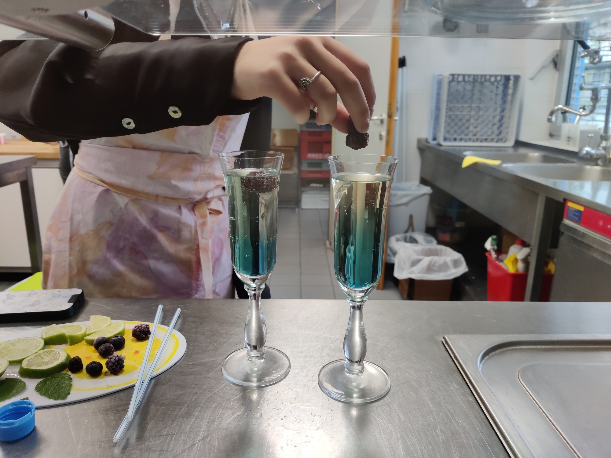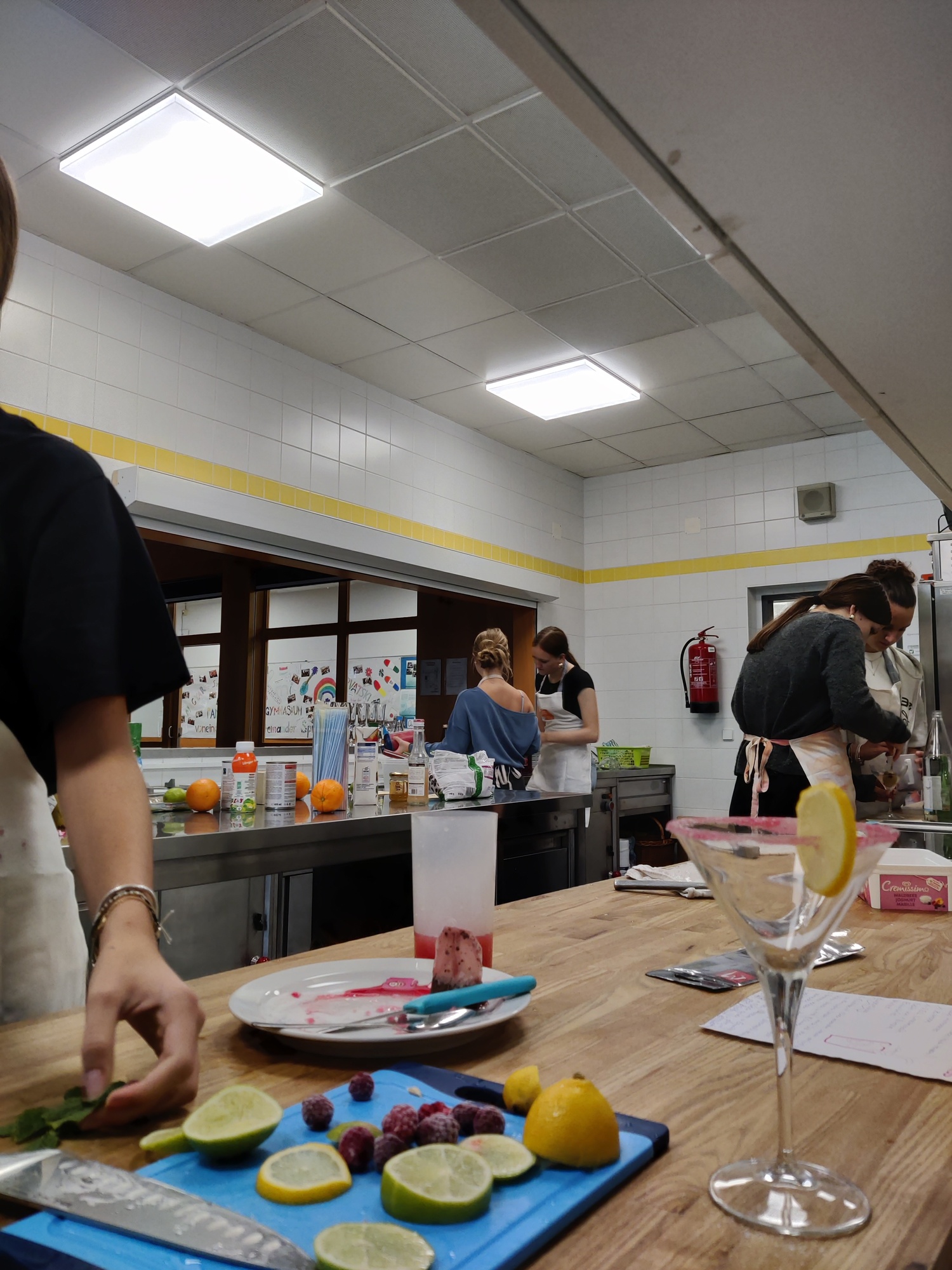Nachdem der Maturaball 2025 erfolgreich und feucht-fröhlich zu Ende ging, gab's im Unterrichtsfach „Haushaltsökonomie und Ernährung" Cocktails „mit ohne Alkohol", sogenannte Mocktails. Die Schülerinnen der 7AF mixten nach Rezepten und kreierten eigene Getränke – „Virgin Mojito", „Virgin Colada", „Paradise kiss", „Bluerry blossom", etc. Sie sahen toll aus und schmeckten und verfehlten ihre Wirkung nicht; die Damen hatten großen Spaß an der Sache. Also: Es geht auch ohne!