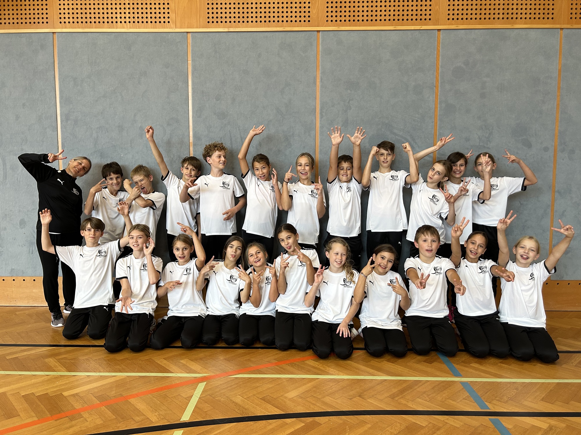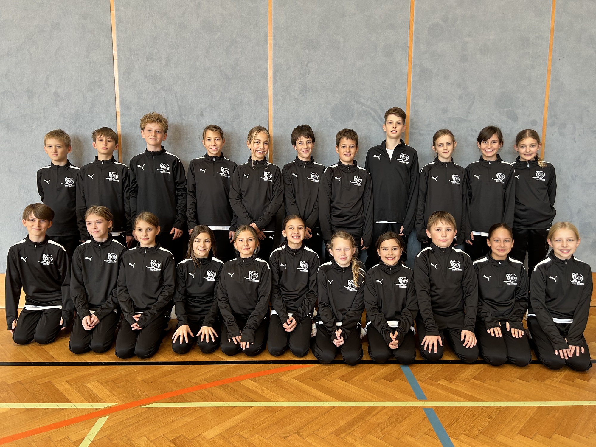 Jetzt wird's sportlich – und stylisch! Die 1B hat neue Trainingsanzüge bekommen und strahlt vor Freude fast heller als das Schullicht. Einheitlich gekleidet fühlt sich die Klasse nicht nur wie ein echtes Team, sondern auch wie ein Profi-Sportverein auf großer Tour. Ob beim Schulsport oder bei Wettkämpfen – mit den neuen Outfits tritt die 1B jetzt im perfekten Team-Look auf. Eins ist klar: Mit so viel Style kann da sportlich (fast) nichts mehr schiefgehen!