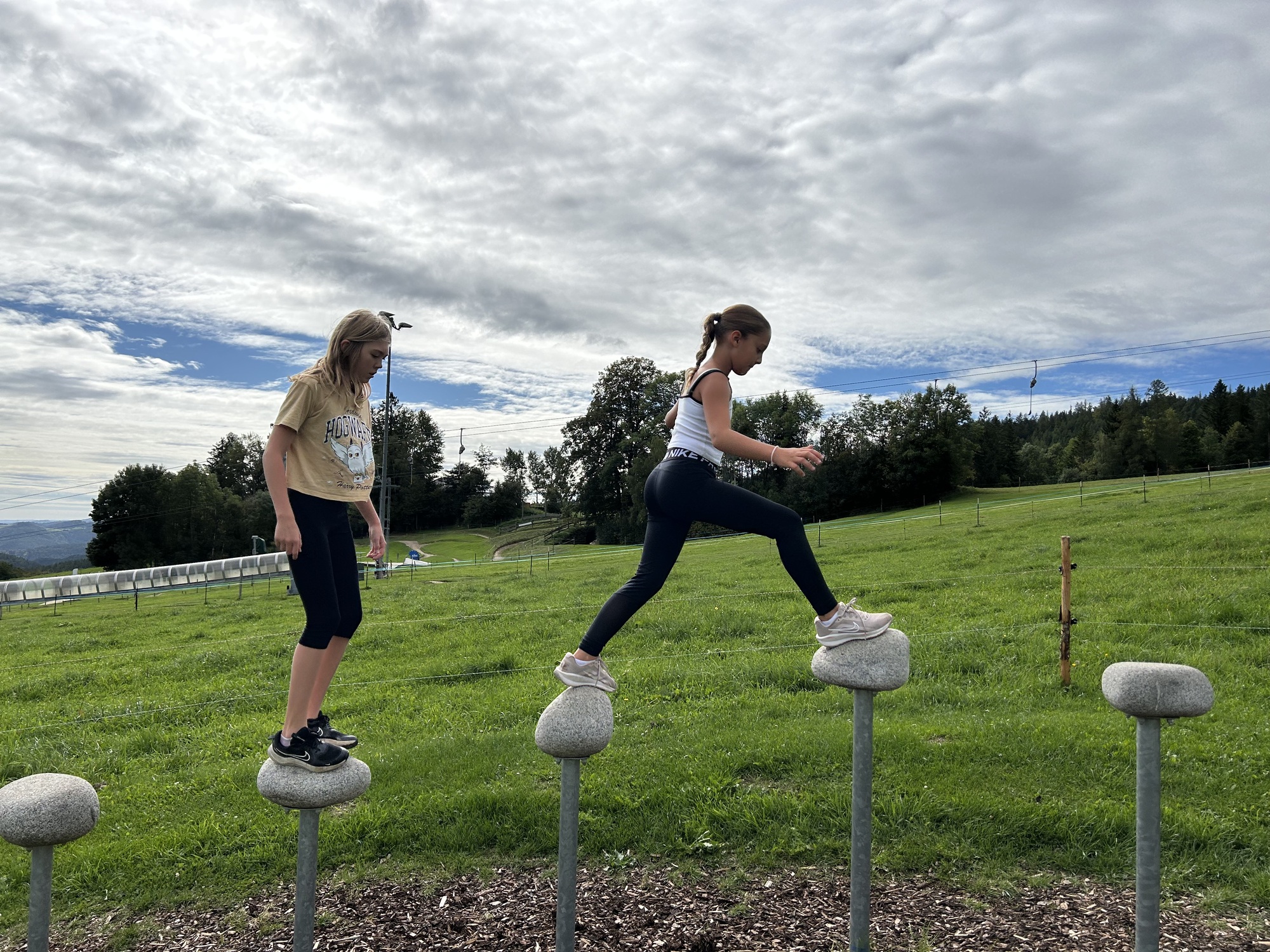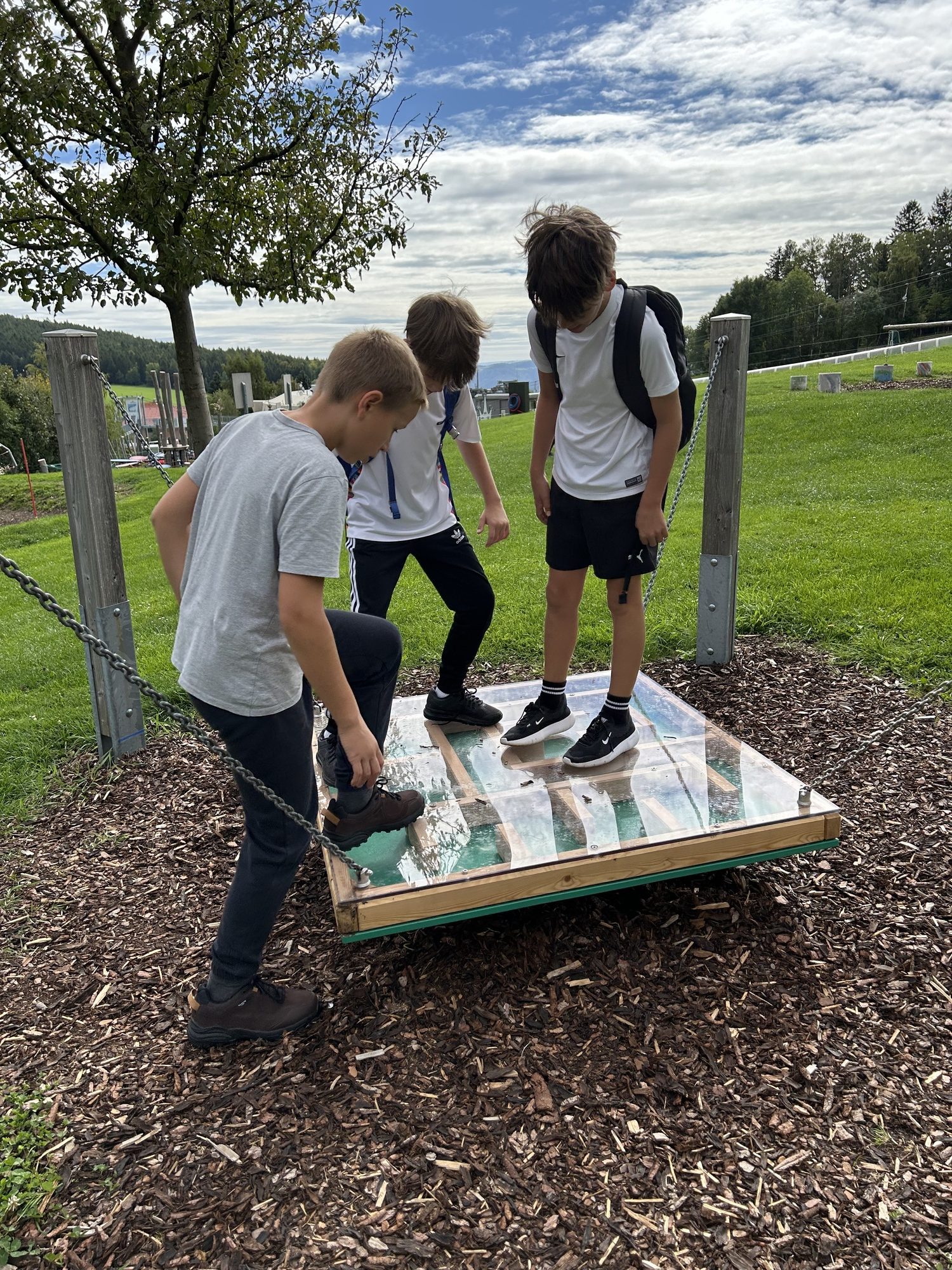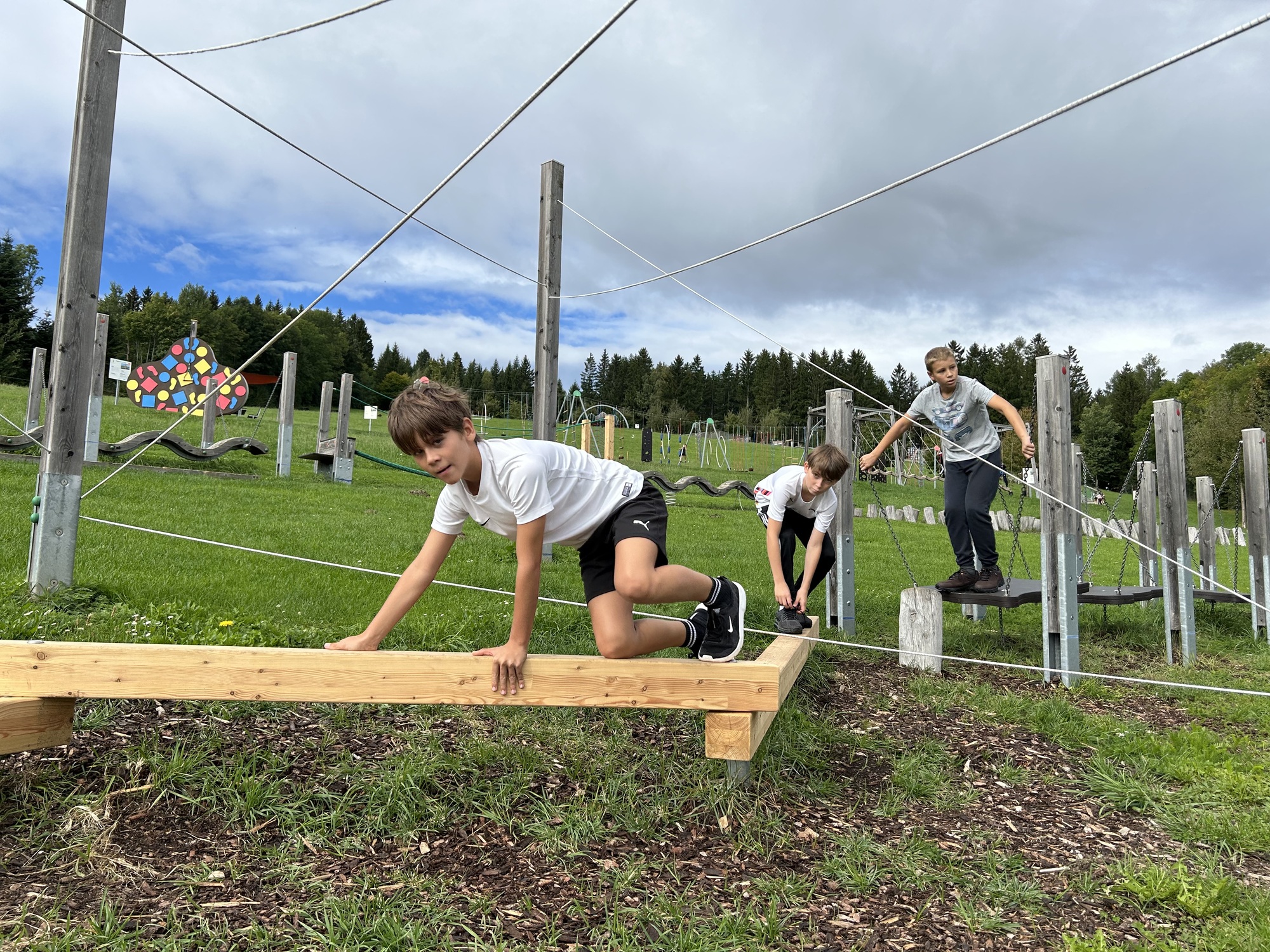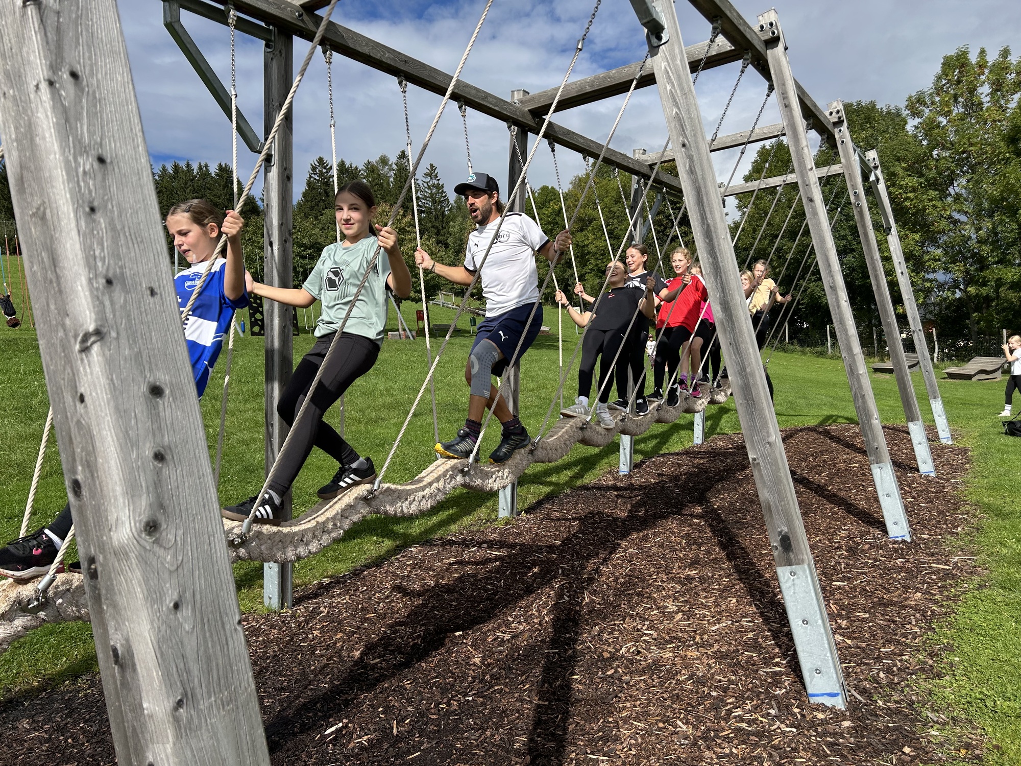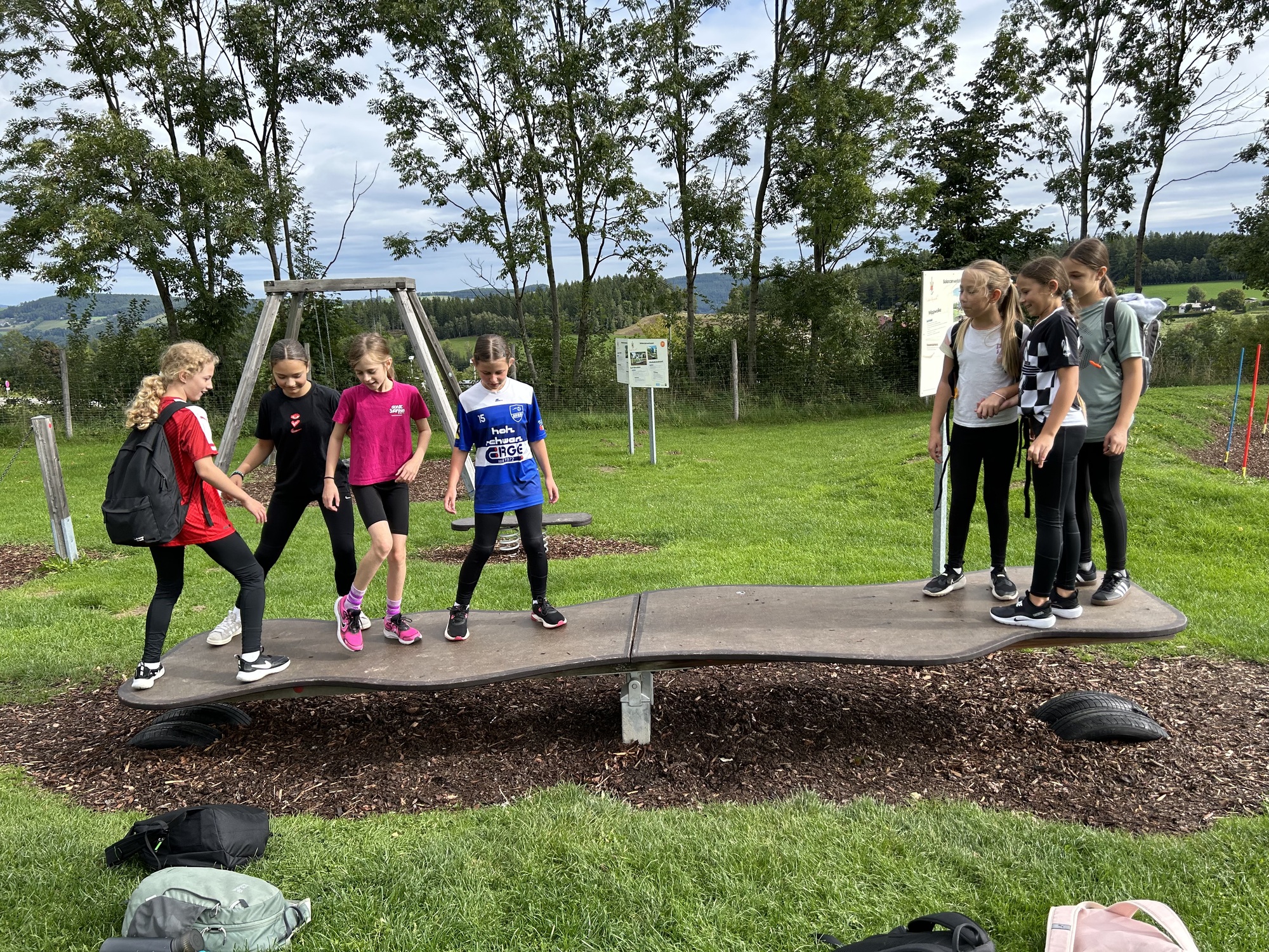 Der Motorikpark bot für alle etwas – egal ob man klettern, balancieren, hangeln oder einfach nur mutig neue Dinge in den Trampolinen ausprobieren wollte. Natürlich wurde auch herzlich gelacht, wenn jemand auf besonders kreative Weise das Gleichgewicht verlor. Doch gerade dieses gemeinsame Ausprobieren machte den Tag so wertvoll: Jede:r konnte über sich hinauswachsen, und wer einmal unsicher war, bekam sofort Unterstützung und Aufmunterung von den anderen.