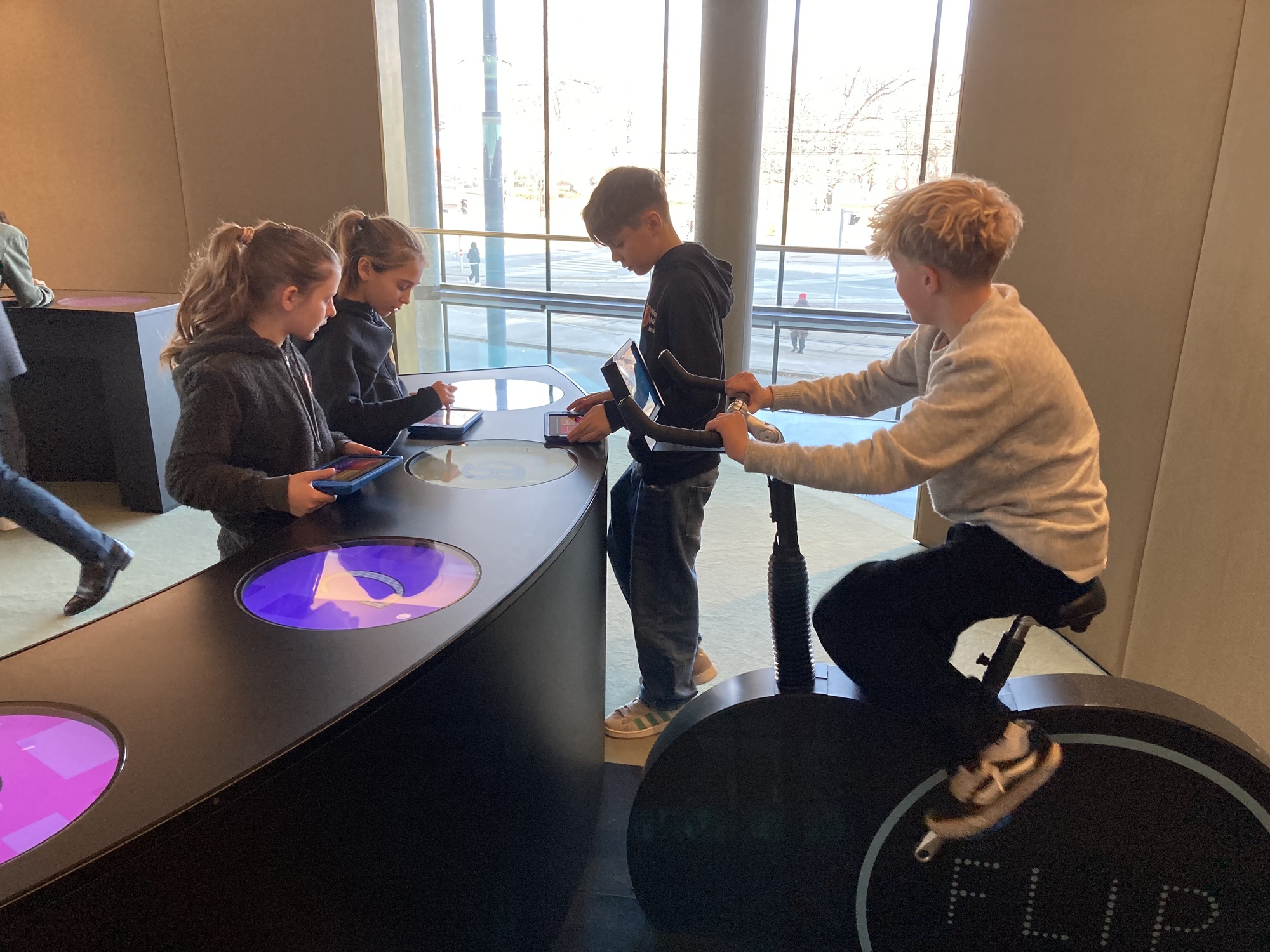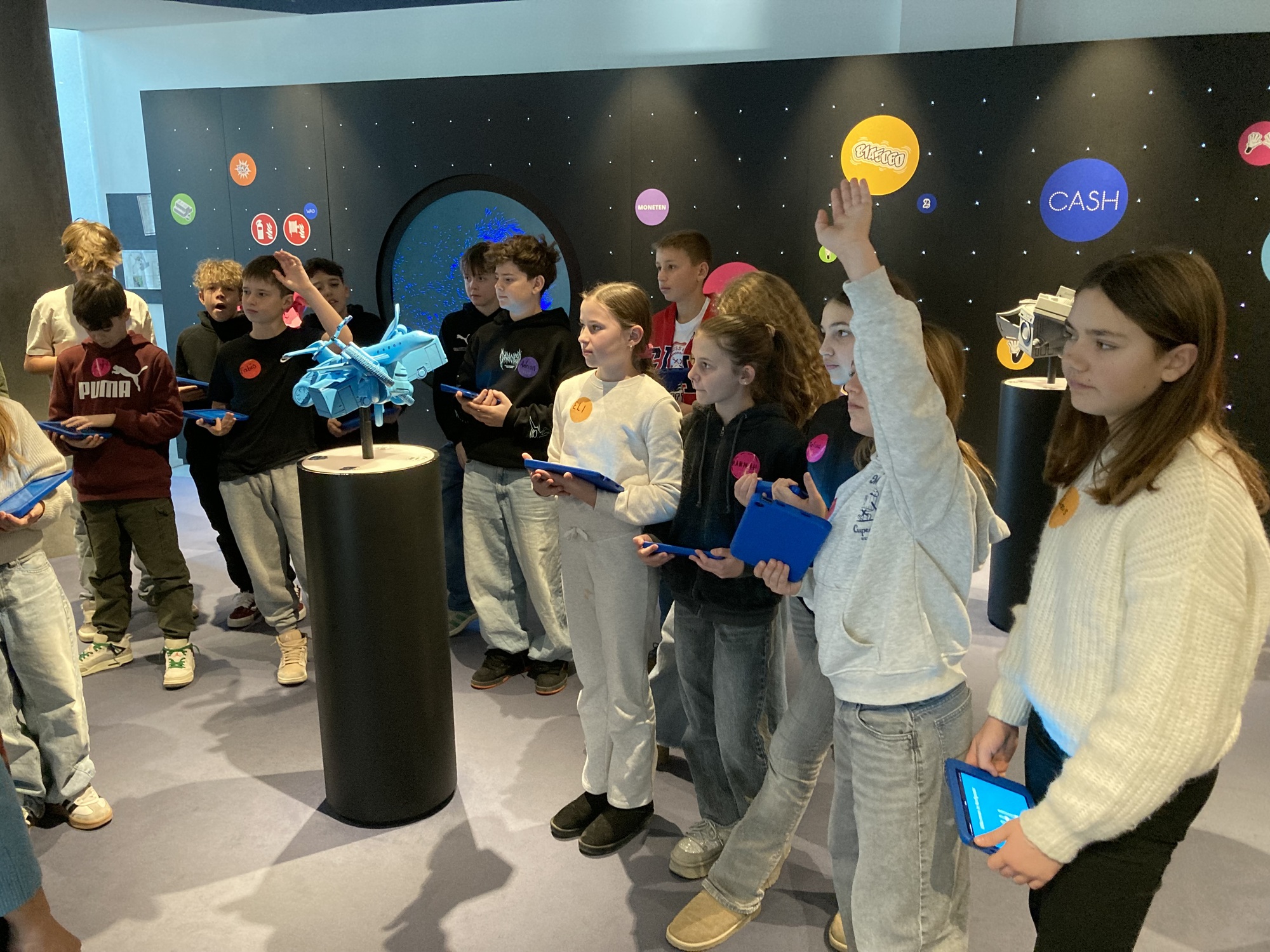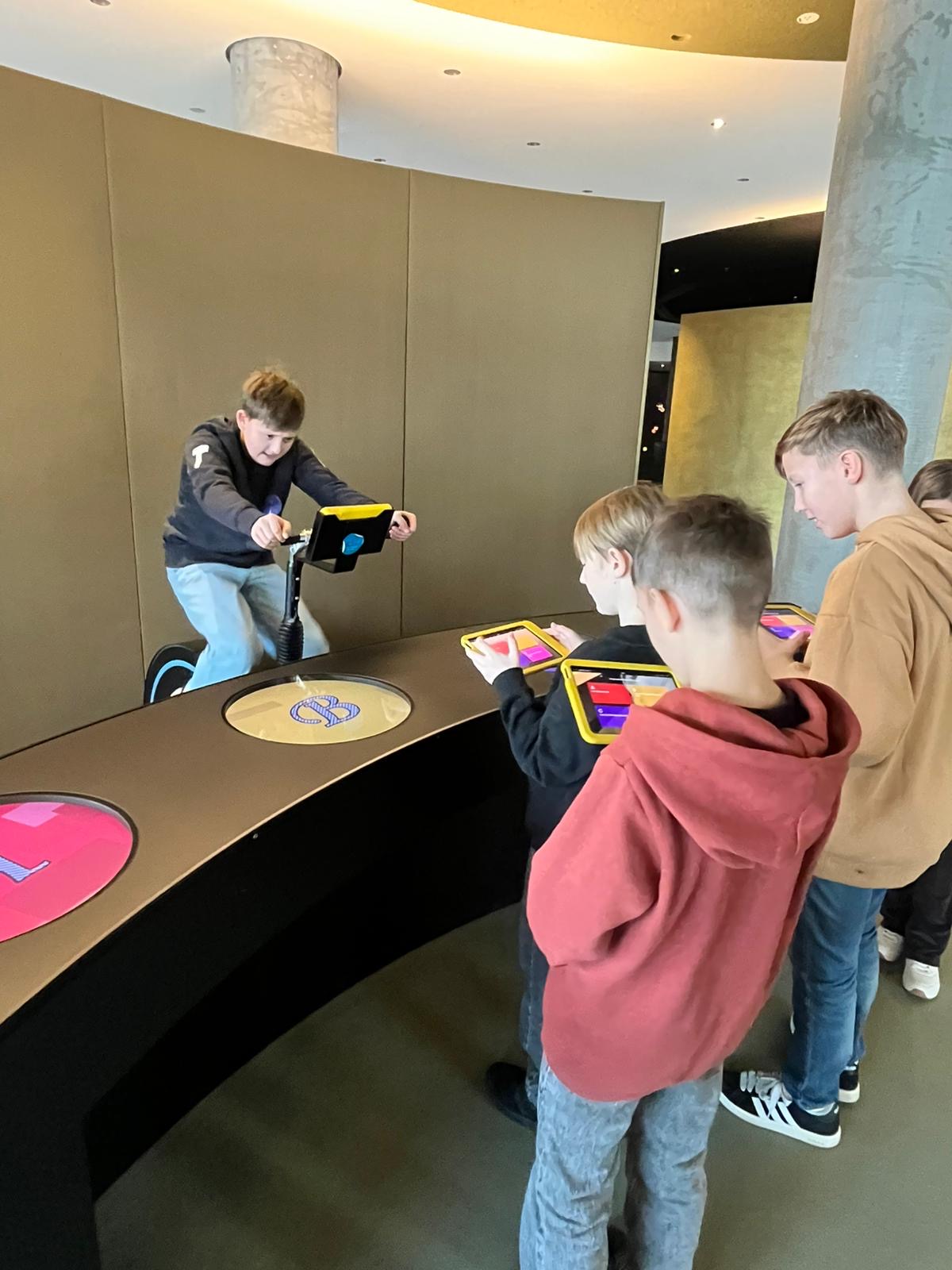 Nach einer kurzen Einschulung im Umgang mit den „Wallets“ begann der „Detektiv:innen learning trail“ im Bildungscampus am Wiener Hauptbahnhof. Im sogenannten Konfigurator machten sich die Schüler:innen Gedanken über die monatlichen Ausgaben eines durchschnittlichen Haushalts und arbeiteten mit statistischen Daten. Danach mussten die Kids beim „Realitycheck“ neben ihrem Wissen auch ihre sportlichen Fähigkeiten unter Beweis stellen, denn das System funktionierte mit dem selbst erzeugten Strom aus den Ergometern. Im hauseignen Hochsicherheitstrakt „Tresorraum“ beschäftigten wir uns mit dem Thema „Wert“ und durften erfahren, dass eine Schwimmweste in manchen Fällen durchaus wertvoller sein kann als ein Barren Gold. Im Meinungsforum setzten wir uns mit dem Thema Sparen auseinander und auf einem multimedialen Globus verfolgten wir den Weg der Schokolade. Am Ende lobte der Tourguide unser breites Finanz- und Wirtschaftswissen, was nicht nur die GWB-Begleitlehrer KRA und SKO erfreute. Nach einer Mittagspause und einer kleinen Aktivierung im Bereich des Belvederes führte uns das nächste Ziel in Richtung Flughafen Wien-Schwechat. Aufgrund der eisigen Kälte an diesem Tag wollten einige in Richtung Süden aufbrechen, doch nach dem Securitycheck führte unser Weg leider nicht in den gerade abgestellten Airbus A380 in Richtung Dubai, sondern in einen Doppeldeckerbus, der uns am Flughafengelände viele interessante Dinge näherbrachte. So sahen wir zahlreiche Flugzeuge, das offizielle FIFA-Flugzeug, welches gerade den WM-Pokal nach Österreich brachte, die Flughafenfeuerwehr oder einen Organtransport, der am VIP-Terminal abgewickelt wurde. Danach ging es in die von Thomas Brezina gestaltete Erlebniswelt, wo uns die verschiedenen Berufe am Flughafen nähergebracht wurden. Und nachdem wir leider keinen Flug in die Wärme ergattern konnten, hieß unser letztes Ziel an diesem Tag „BRGOP“.