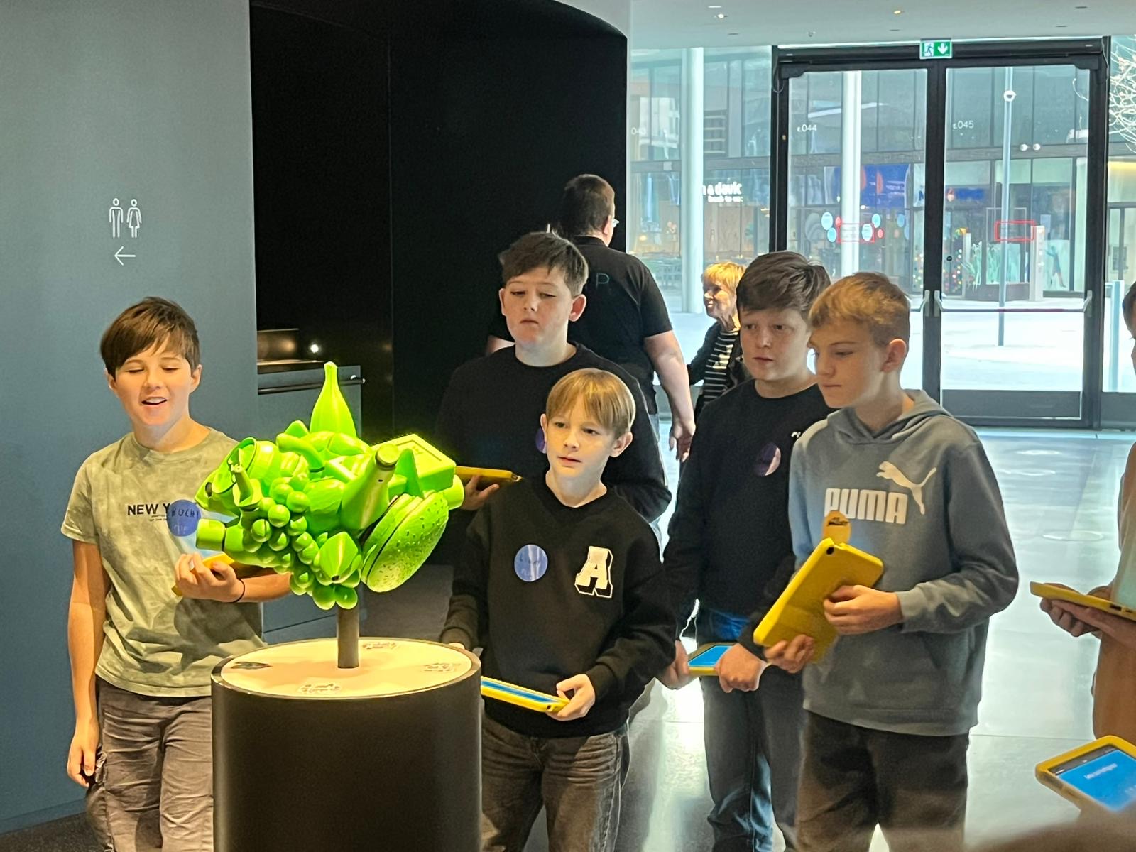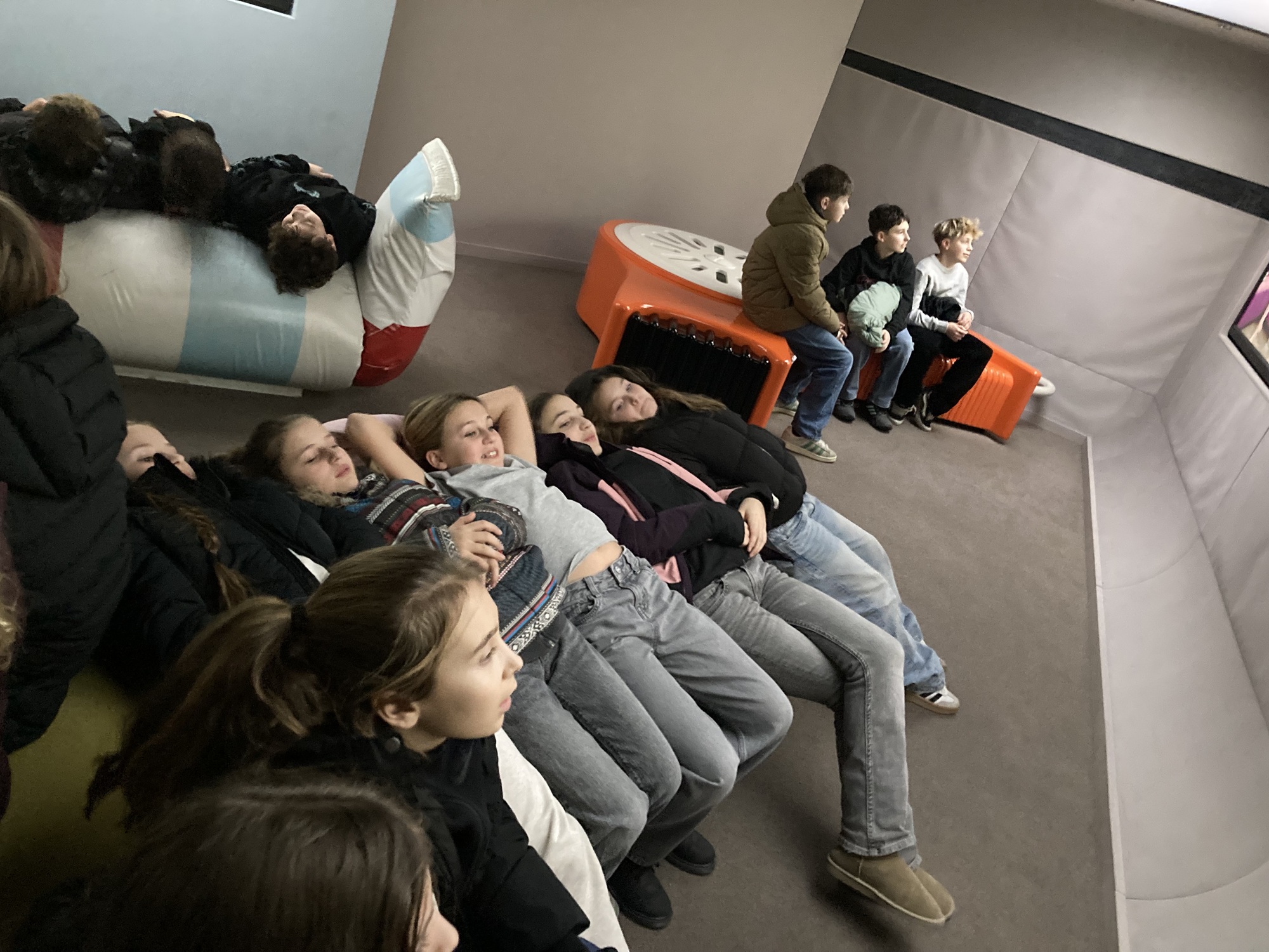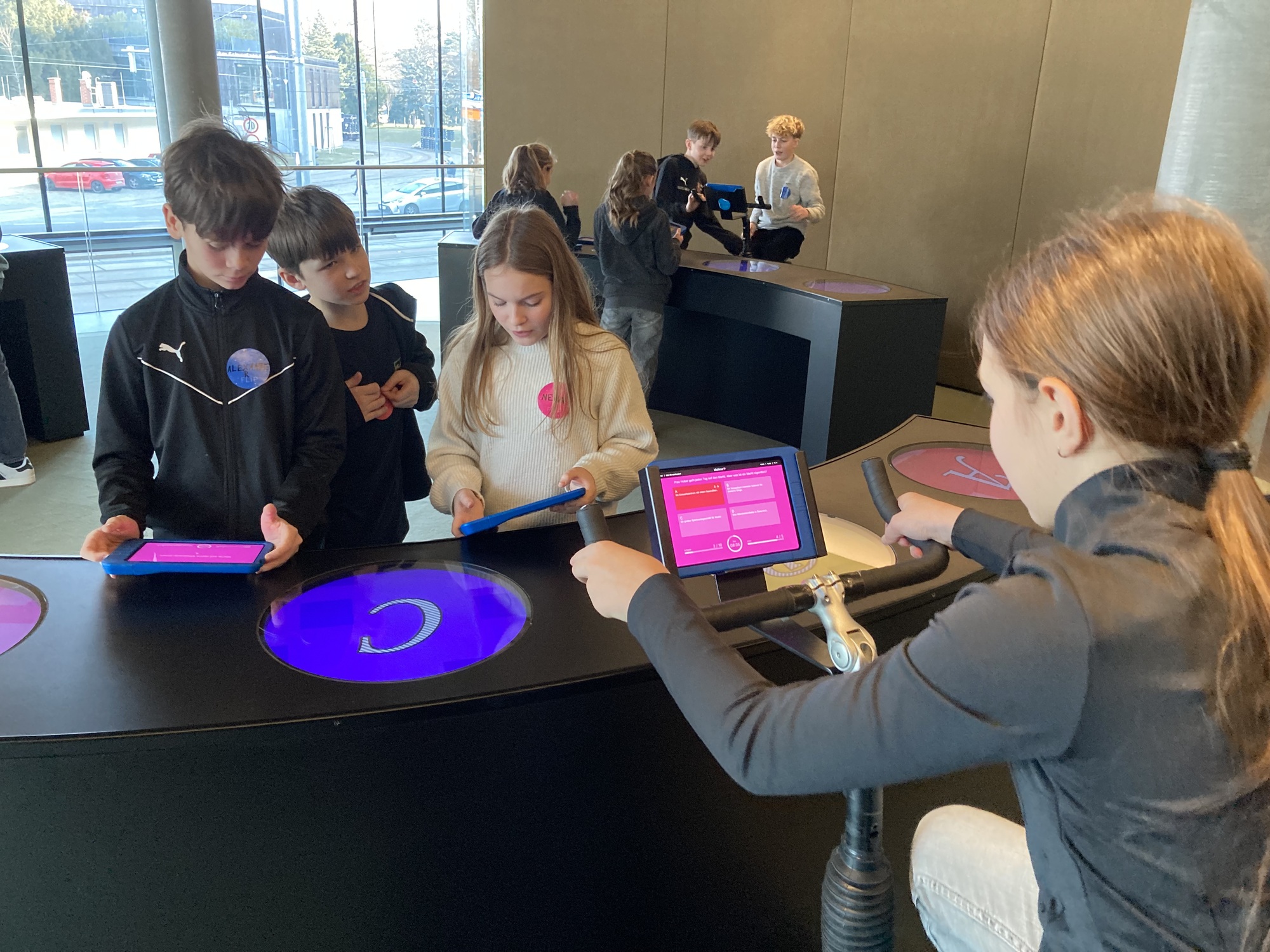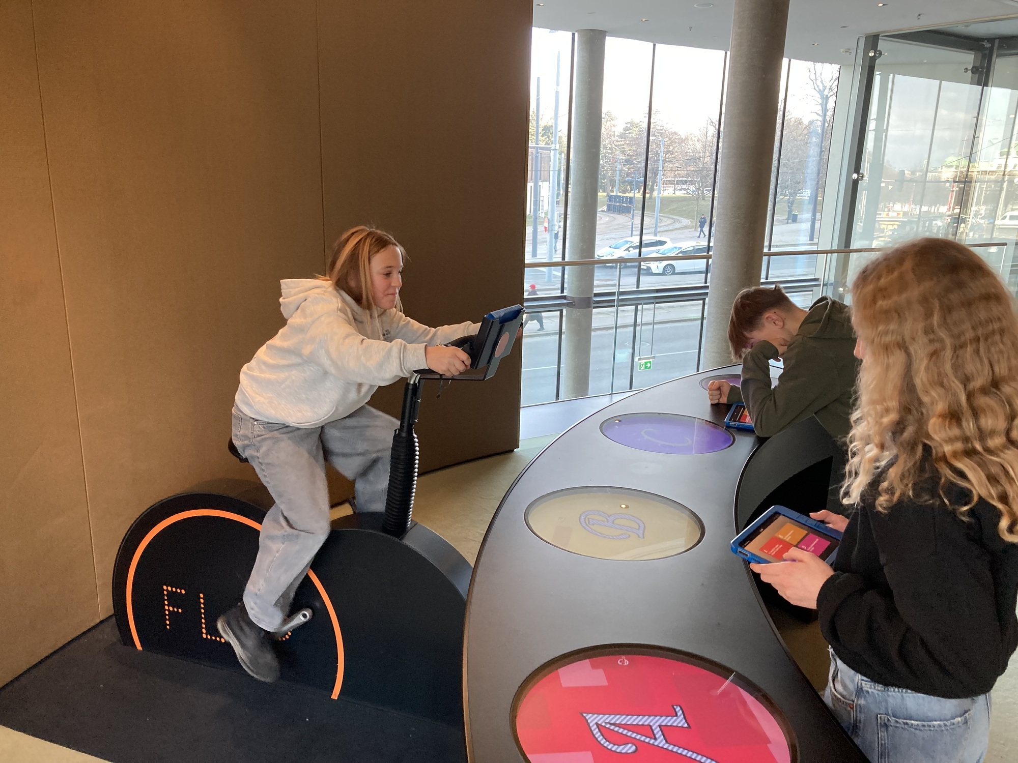 Nach einer kurzen Einschulung im Umgang mit den „Wallets“ begann der „Detektiv:innen learning trail“ im Bildungscampus am Wiener Hauptbahnhof. Im sogenannten Konfigurator machten sich die Schüler:innen Gedanken über die monatlichen Ausgaben eines durchschnittlichen Haushalts und arbeiteten mit statistischen Daten. Danach mussten die Kids beim „Realitycheck“ neben ihrem Wissen auch ihre sportlichen Fähigkeiten unter Beweis stellen, denn das System funktionierte mit dem selbst erzeugten Strom aus den Ergometern. Im hauseignen Hochsicherheitstrakt „Tresorraum“ beschäftigten wir uns mit dem Thema „Wert“ und durften erfahren, dass eine Schwimmweste in manchen Fällen durchaus wertvoller sein kann als ein Barren Gold. Im Meinungsforum setzten wir uns mit dem Thema Sparen auseinander und auf einem multimedialen Globus verfolgten wir den Weg der Schokolade. Am Ende lobte der Tourguide unser breites Finanz- und Wirtschaftswissen, was nicht nur die GWB-Begleitlehrer KRA und SKO erfreute. Nach einer Mittagspause und einer kleinen Aktivierung im Bereich des Belvederes führte uns das nächste Ziel in Richtung Flughafen Wien-Schwechat. Aufgrund der eisigen Kälte an diesem Tag wollten einige in Richtung Süden aufbrechen, doch nach dem Securitycheck führte unser Weg leider nicht in den gerade abgestellten Airbus A380 in Richtung Dubai, sondern in einen Doppeldeckerbus, der uns am Flughafengelände viele interessante Dinge näherbrachte. So sahen wir zahlreiche Flugzeuge, das offizielle FIFA-Flugzeug, welches gerade den WM-Pokal nach Österreich brachte, die Flughafenfeuerwehr oder einen Organtransport, der am VIP-Terminal abgewickelt wurde. Danach ging es in die von Thomas Brezina gestaltete Erlebniswelt, wo uns die verschiedenen Berufe am Flughafen nähergebracht wurden. Und nachdem wir leider keinen Flug in die Wärme ergattern konnten, hieß unser letztes Ziel an diesem Tag „BRGOP“.