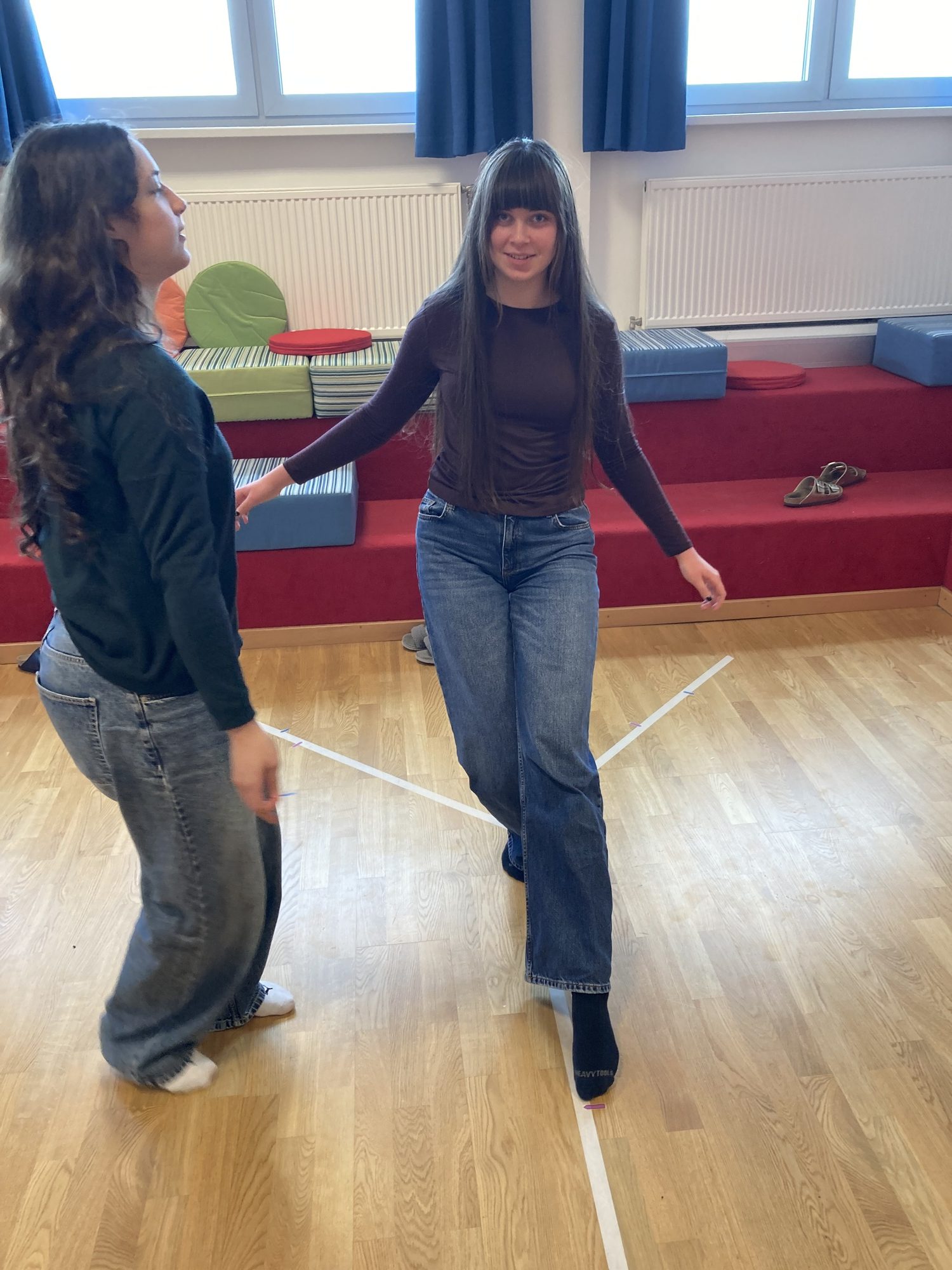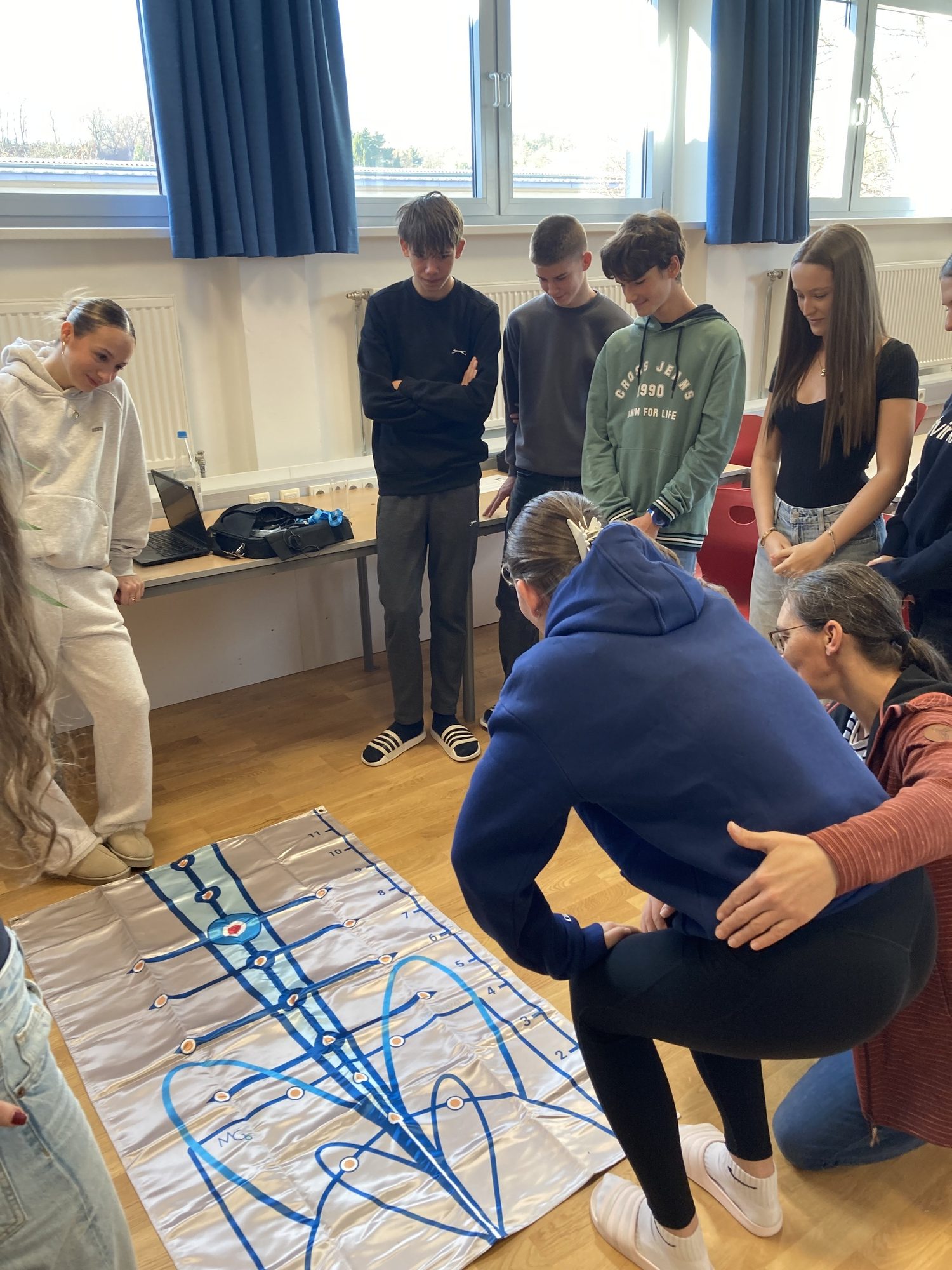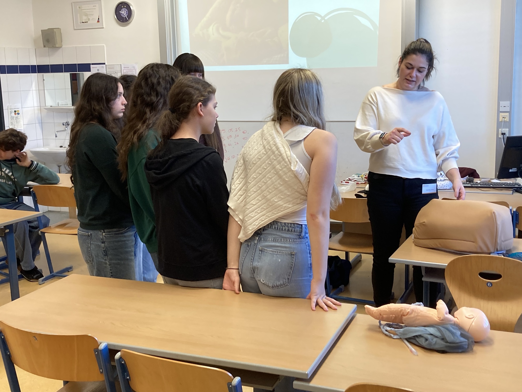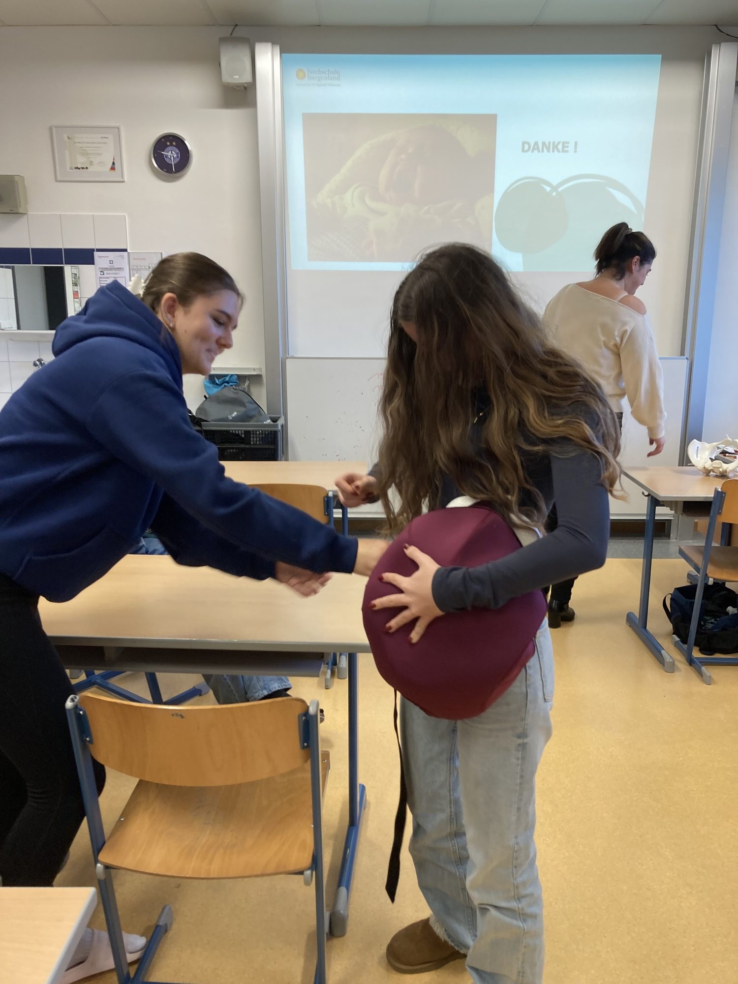 Kurz vor den Weihnachtsferien hatten unsere FIT4future-Schüler:innen die exklusive Möglichkeit einzelne Angebote der Hochschule Burgenland kennenzulernen. Dabei wurde der Fokus vor allem auf die Angebote im medizinischen Bereich gerichtet und so schauten zwei topmotivierte Physiotherapeuten und eine superemphatische Hebamme bei uns an der Schule vorbei und präsentierten ihre absolvierten Studiengänge. Dabei stand der klassische Frontalvortrag aber eher im Hintergrund, denn viele Dinge durften selbst ausprobiert werden. Muskelfunktionstests wurden durchgeführt, diverse Gelenke vermessen und einige kamen beim „Fahrstuhltest" ziemlich ins Schwitzen. Nach einem spannenden Quiz lautete das Motto des 2. Workshops „9 Monate Schwangerschaft in 90 Minuten". Nach einer kurzen Einführung in den Bereichen Verhütung, Schwangerschaft, Geburt & Wochenbett hatten die FIT4future´s auch hier die Möglichkeit selbst aktiv zu werden: sie berechneten den Geburtstermin, erkundeten die Lage eines Babys im Bauch und erfuhren, wie eine Hebamme Mutter und Kind rund um die Geburt begleitet.