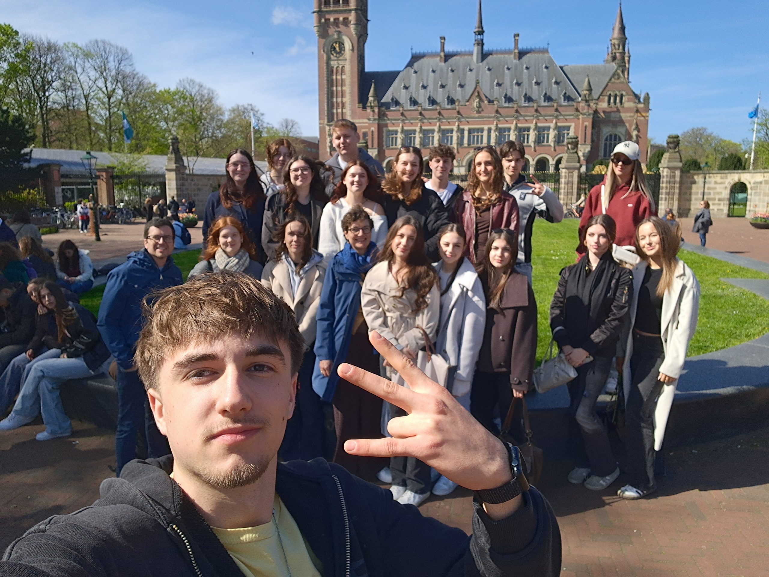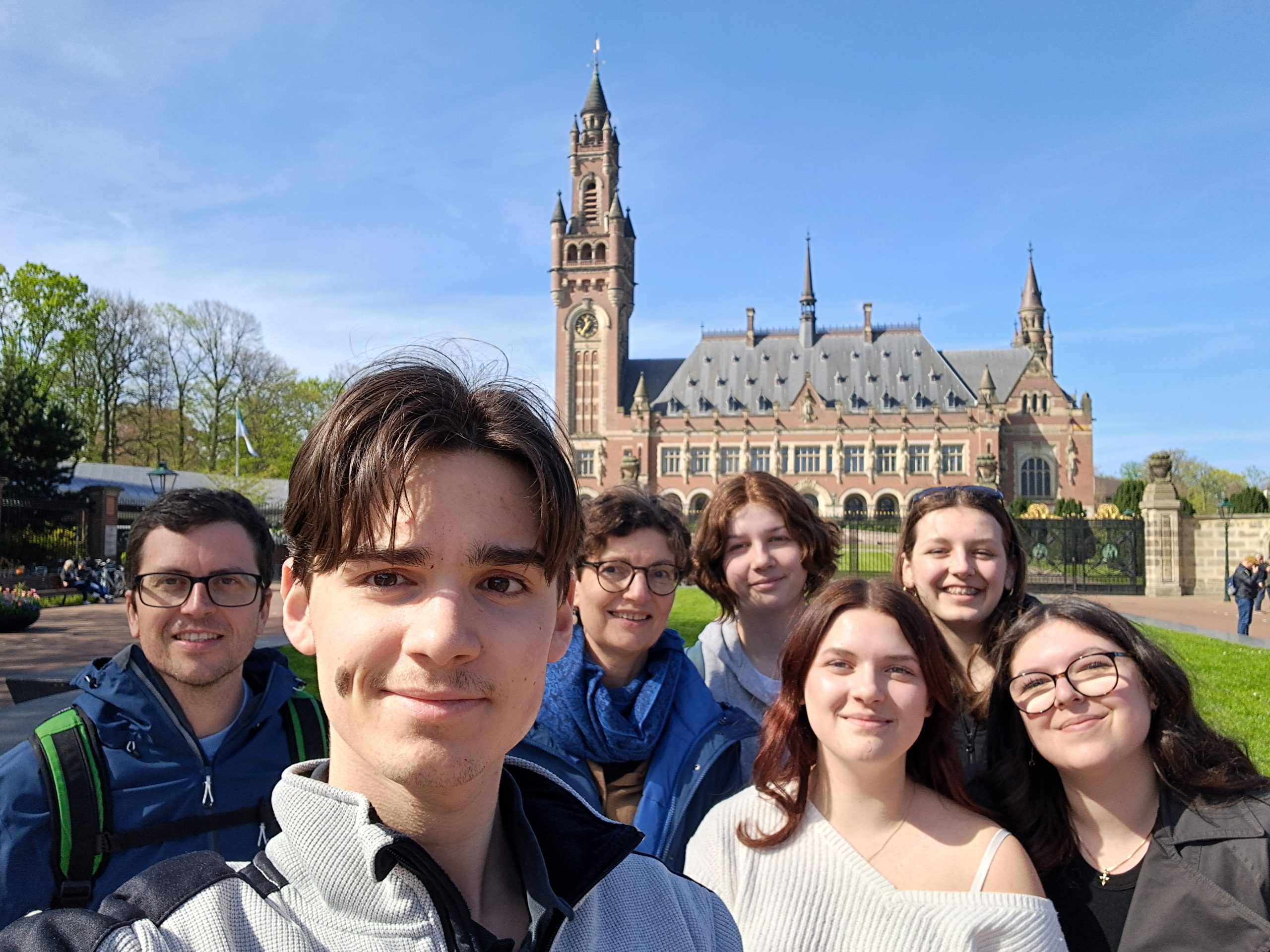 Am Dienstagmorgen machten wir uns auf den Weg zum Internationalen Strafgerichtshof. Nach einem informativen Kurzfilm über den ISTGH konnten wir uns mithilfe eines Audioguides einen Einblick in einen Fall des ISTGHs verschaffen. Erzählt wurde die tragische Geschichte einer Frau aus einem afrikanischen Dorf. Die Dorfbewohner wurden von Soldaten misshandelt, ausgeraubt und aus ihrem Dorf vertrieben. Nach der Audiotour trafen wir unsere Partnerschule aus Neapel, mit der wir im Anschluss an ein Gruppenfoto gemeinsam nach Rotterdam fuhren.