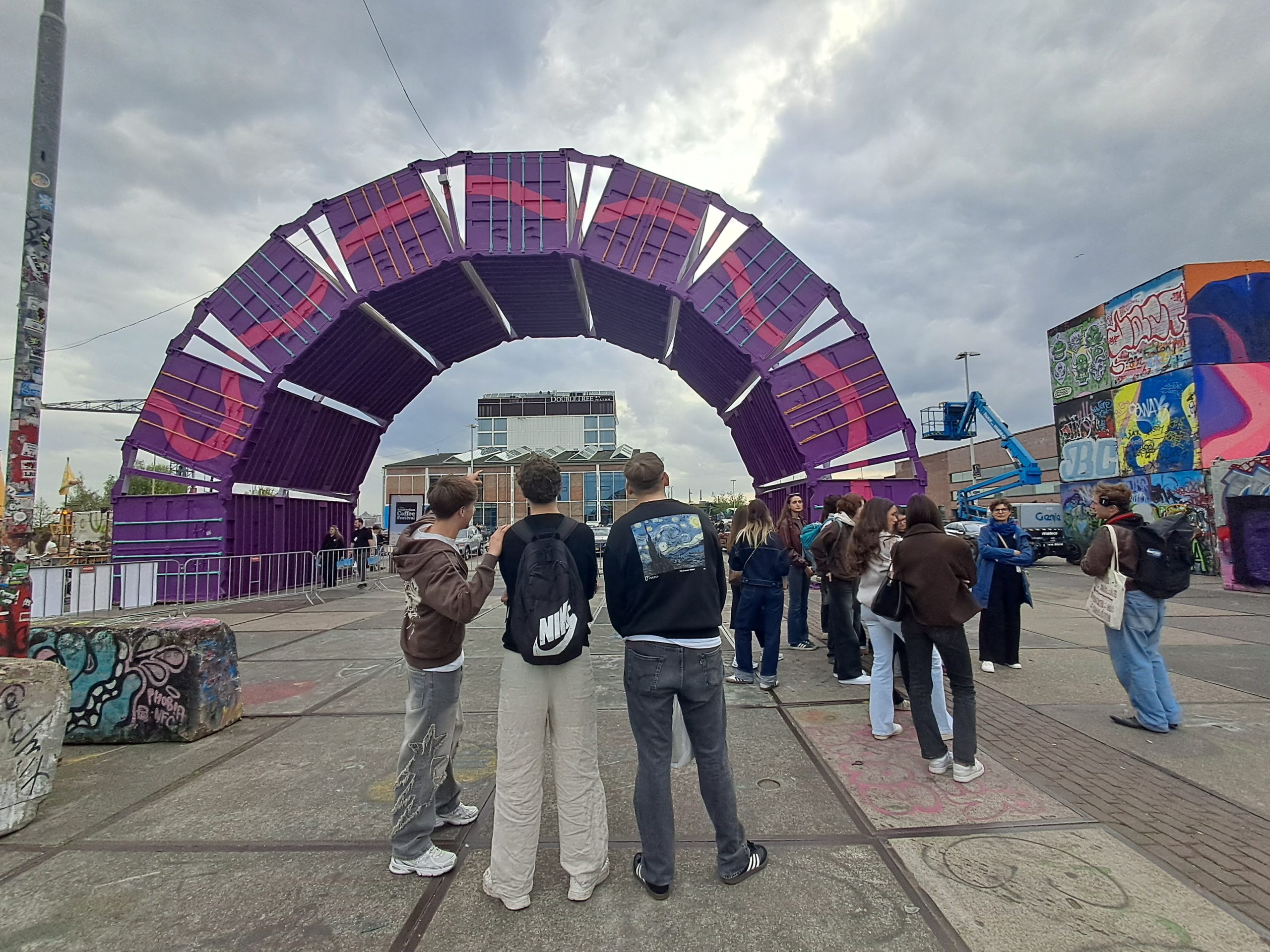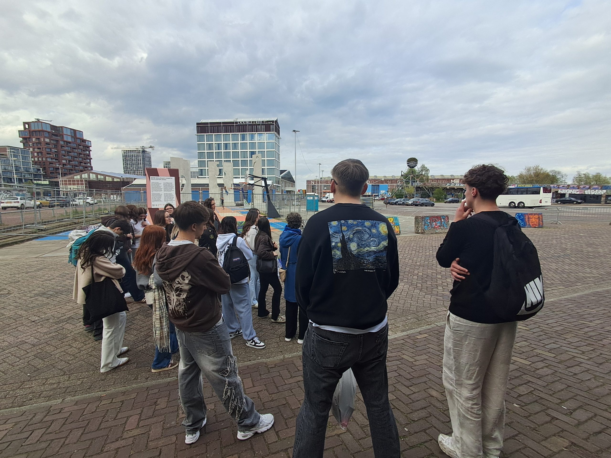 Am Freitagnachmittag zeigte uns ein Tourguide das nachhaltige Leben in Amsterdam. Zuerst waren wir in einer Fahrrad-Tiefgarage, was sehr ungewöhnlich für uns war. Dies zeigte uns die ungewöhnlich hohe Anzahl an Fahrrädern in Amsterdam (950.000 Einwohner und knapp 2 Mio. Fahrräder). Danach fuhren wir mit einer E – Fähre in den Norden von Amsterdam. Dort wurde nochmal deutlich, wie nachhaltig diese Stadt ist. Ein weiterer Programmpunkt war das Künstlerviertel im Norden, wo uns der Prozess der Gentrifizierung in diesem Stadtteil erklärt wurde. Auch der Tourismus spielt in diesem Stadtteil eine besondere Rolle. Wir bestaunten einen ehemaligen Kran der Werft, der nun als Hotel gebucht werden kann.