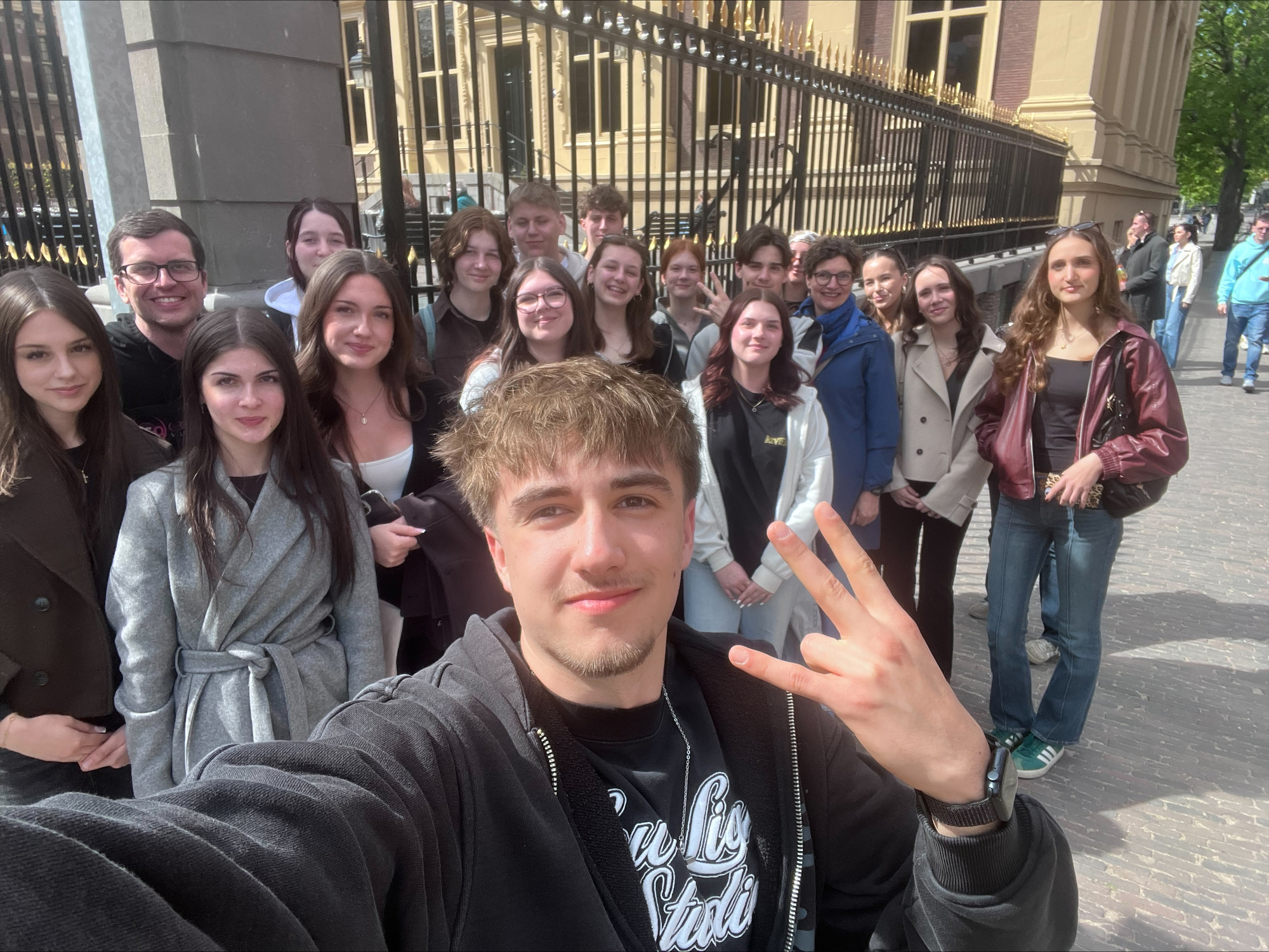 Am 16.04 waren wir mit der Partnerschule aus Neapel im Oranjehotel in Den Haag. Dort wurden wir von einem netten Herrn empfangen, von dem wir anfangs auch eine Einführung über die Gründung des Gefängnisses bekamen. Das Gefängnis war damals für Juden und NS-Gegner gedacht, welche dort unterdrückt oder manchmal sogar ermordet wurden. Insgesamt waren 25.000 Personen in dem Gefängnis inhaftiert. Anschließend erkundeten wir in Gruppen gemeinsam mit den Austauschschüler:innen den Ort und lösten selbständig verschiedene Aufgaben.