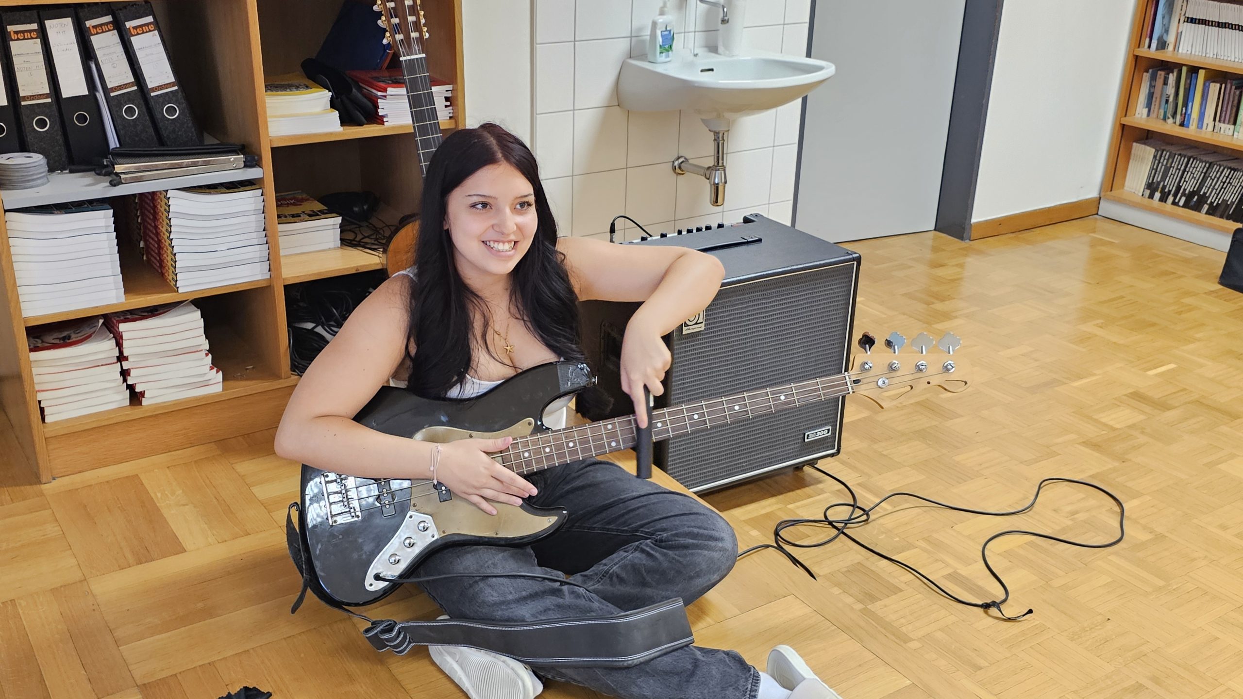 Die ersten praktischen Übungen begannen mit der Pentatonik, einer Tonleiter mit fünf Tönen, die besonders gut für Einsteiger geeignet ist. In kleinen Gruppen improvisierten die Schülerinnen und Schüler über einfache Akkordfolgen und lernten dabei, aufeinander zu hören und musikalisch zu reagieren.