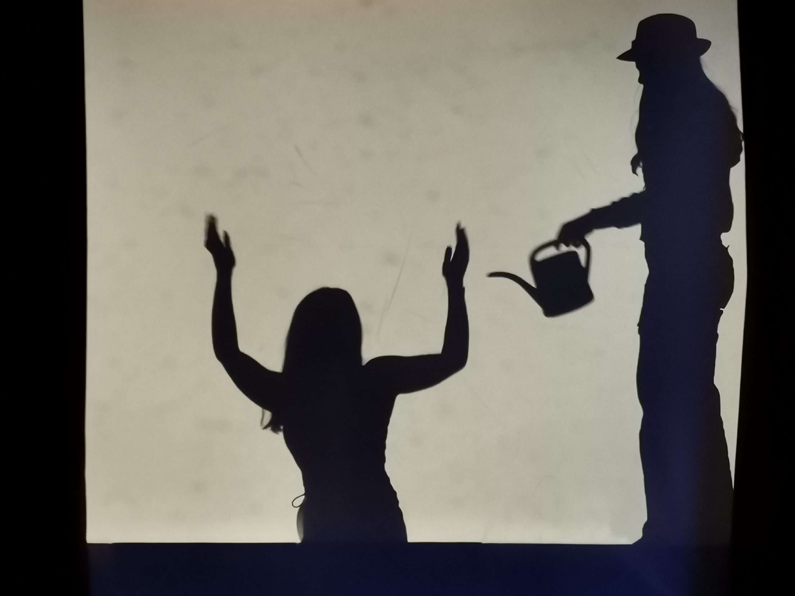 Dann versuchten wir uns auf der Theaterbühne: Bei einem Workshop im Theatermuseum lernten wir die Tricks des Schattentheaters kennen. Wir entwickelten kleine Szenen, experimentierten mit bunten Schatten, Bewegung und Musik und erzielten so mit einfachen Mitteln verblüffende Wirkungen.