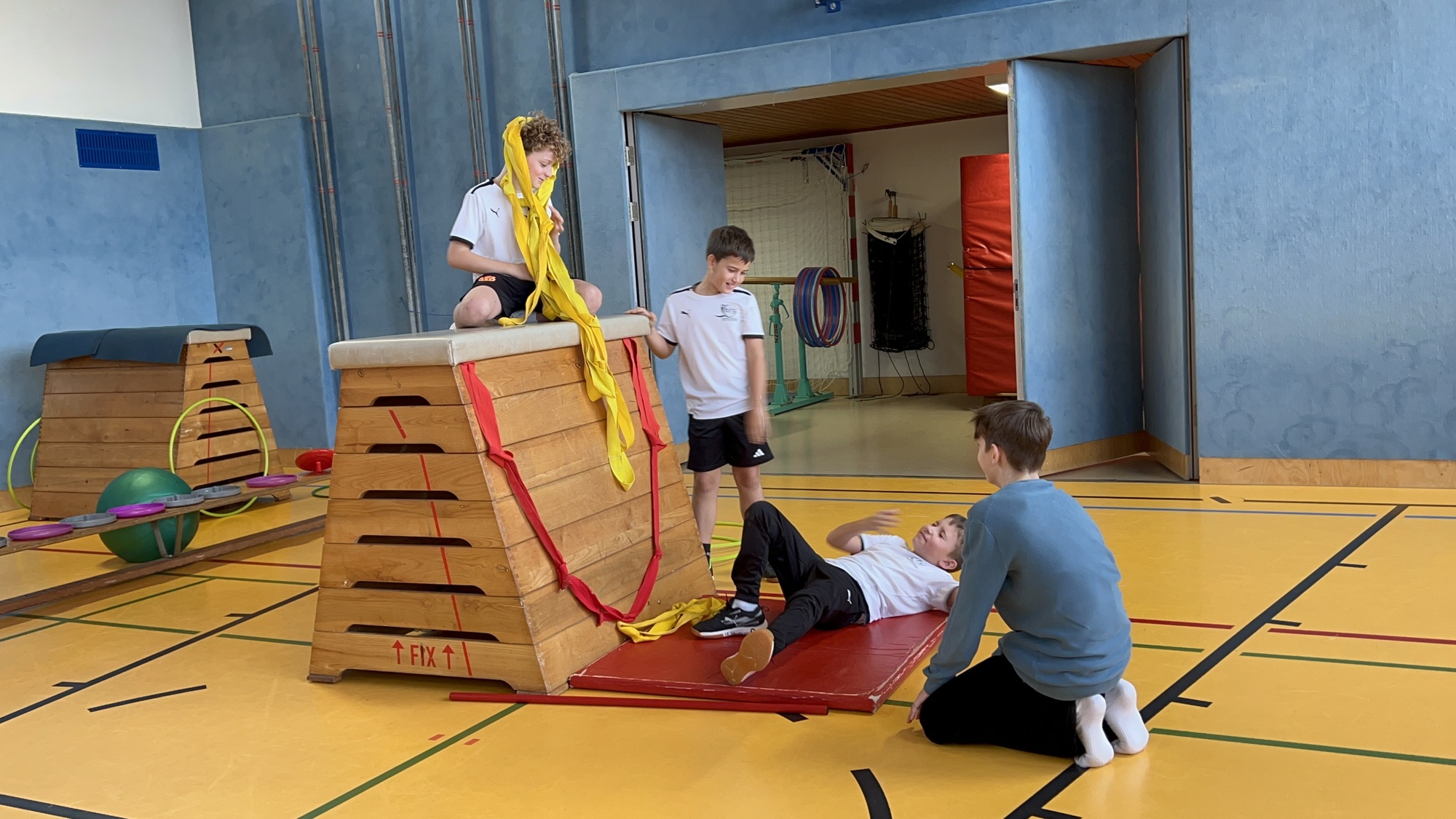 Im Deutschunterricht beschäftigten sich die Schüler:innen der 1B mit dem Thema Märchen. Im Zuge eines fächerübergreifenden Projektes wurden bekannte Märchen der Gebrüder Grimm mit viel Fantasie und einigen Accessoires aus dem BS-Geräteraum umgesetzt. Von Rotkäppchen über Aschenputtel bis hin zu Dornröschen waren alle Klassiker dabei. Jede Gruppe entwickelte eigene Bewegungsabläufe und kleine Szenen, die die Märchen auf sportliche Weise erzählten.