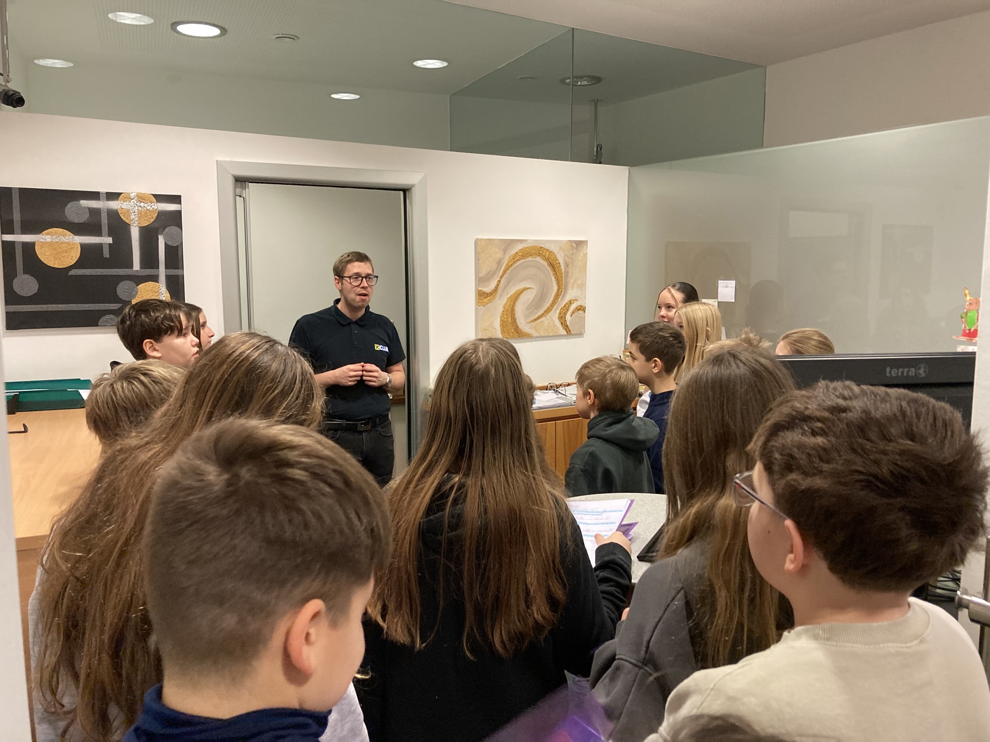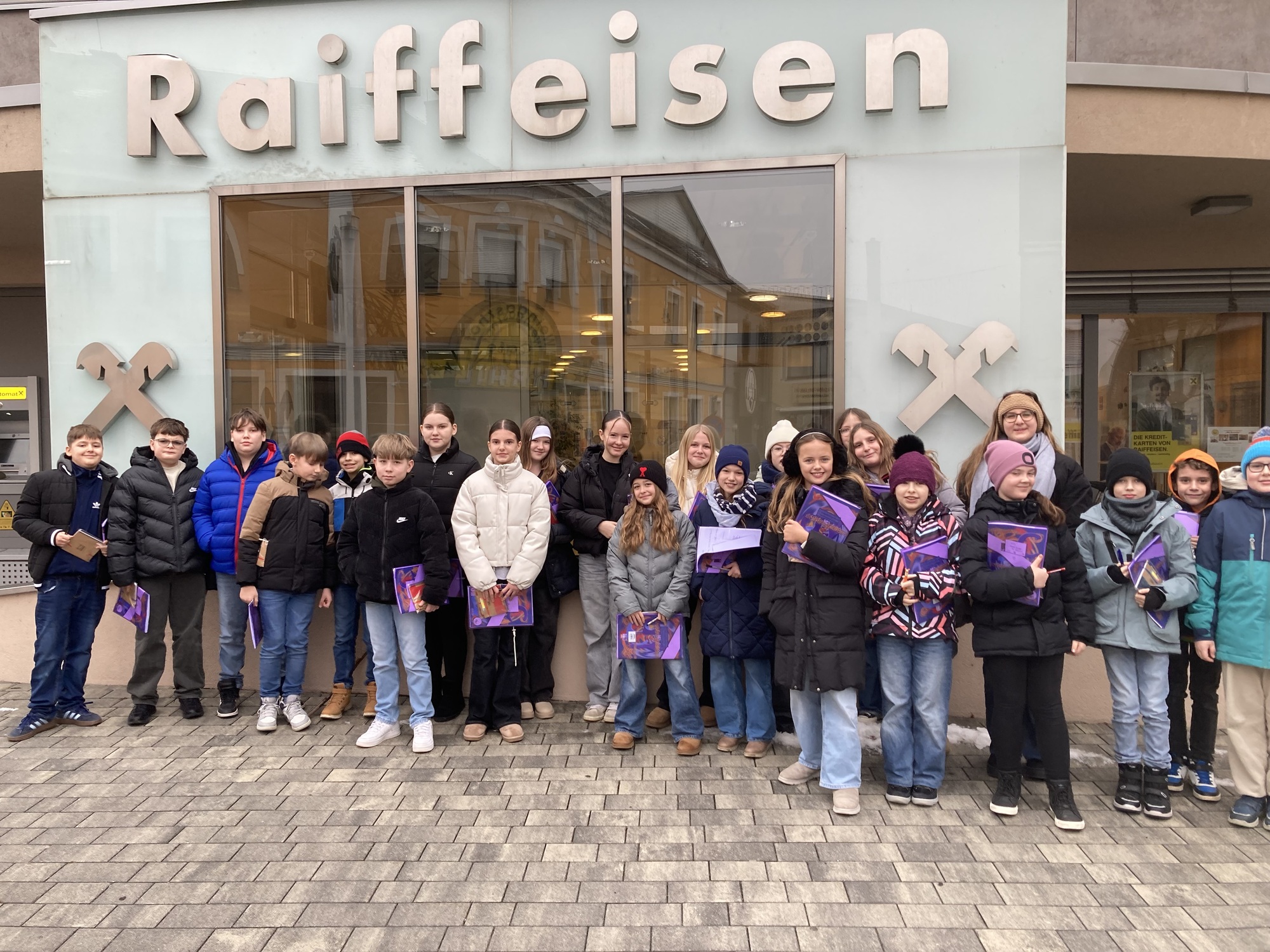 Vor den Semesterferien machten sich 24 junge Tatverdächtige der 1D-Klasse auf den Weg in die City von Oberpullendorf. Ein Gebäude wurde dabei bereits längere Zeit ausspioniert und mit einem „Pferdekopf-Giebelkreuz“ markiert. Ein Symbol welches die Bewohner:innen vor jeglichen Gefahren beschützen soll, doch in diesem Fall kam es völlig anders. Nach einer kurzen Absprache im Foyer der Bank knöpften sich die Schurken den hochgesicherten Tresorraum vor. Dort mussten sie feststellen, dass neben jeder Menge Bargeld auch Edelmetall eingelagert war. Geld das von edlen Sparer:innen stammt und plötzlich nicht mehr sicher war. Danach begaben sich die Ganoven in den ersten Stock und beschäftigten sich mit der Grundidee einer genossenschaftlich organisierten Bank, gingen der Frage nach, warum es sinnvoll ist zu sparen und welche Dinge bei einem Kredit zu beachten sind. Nach all dieser Aufregung plünderten die Banditen noch eine vorbereitete Jause und bedankten sich artig für die Gastfreundschaft und die vielen neuen Inputs.