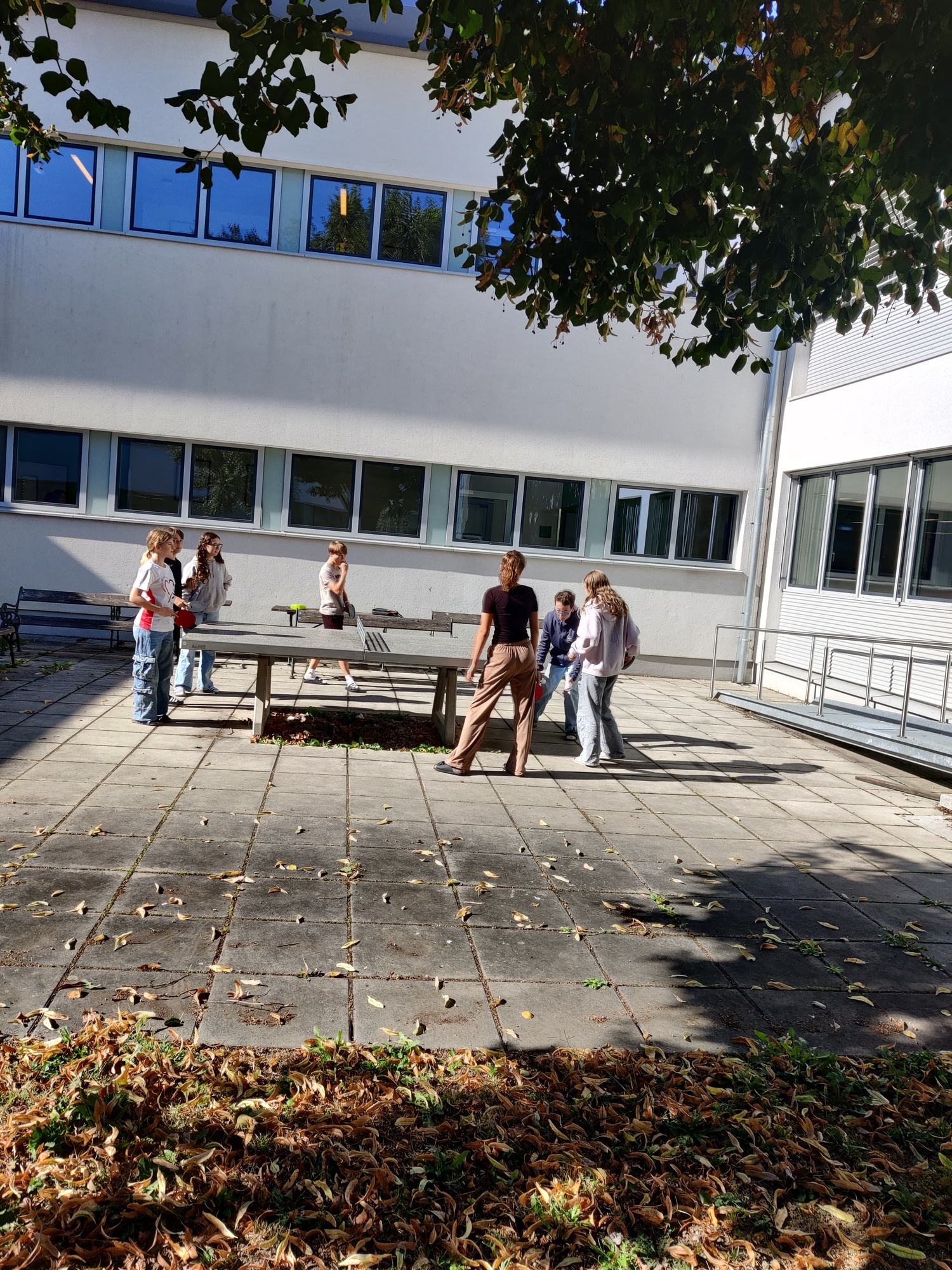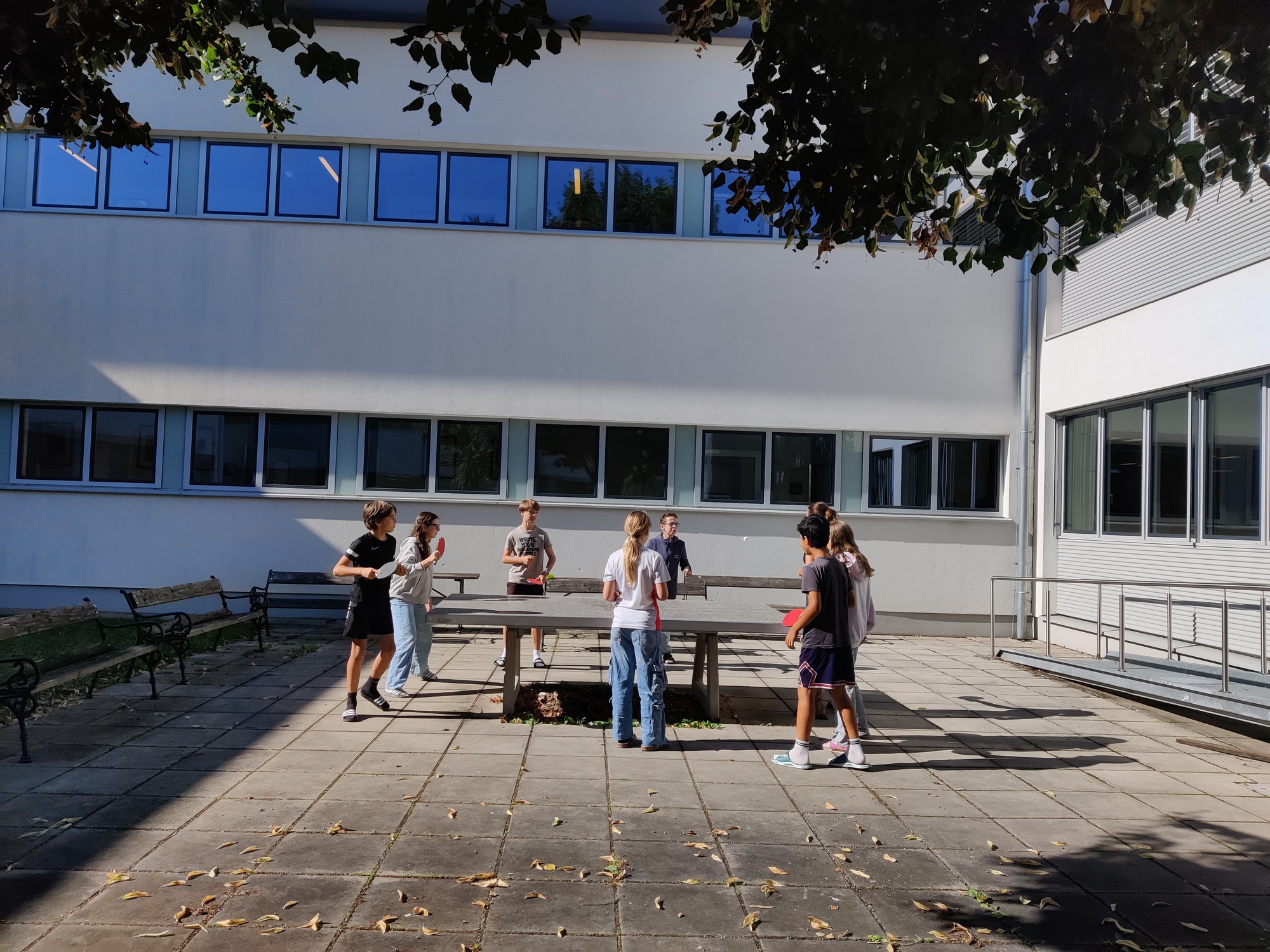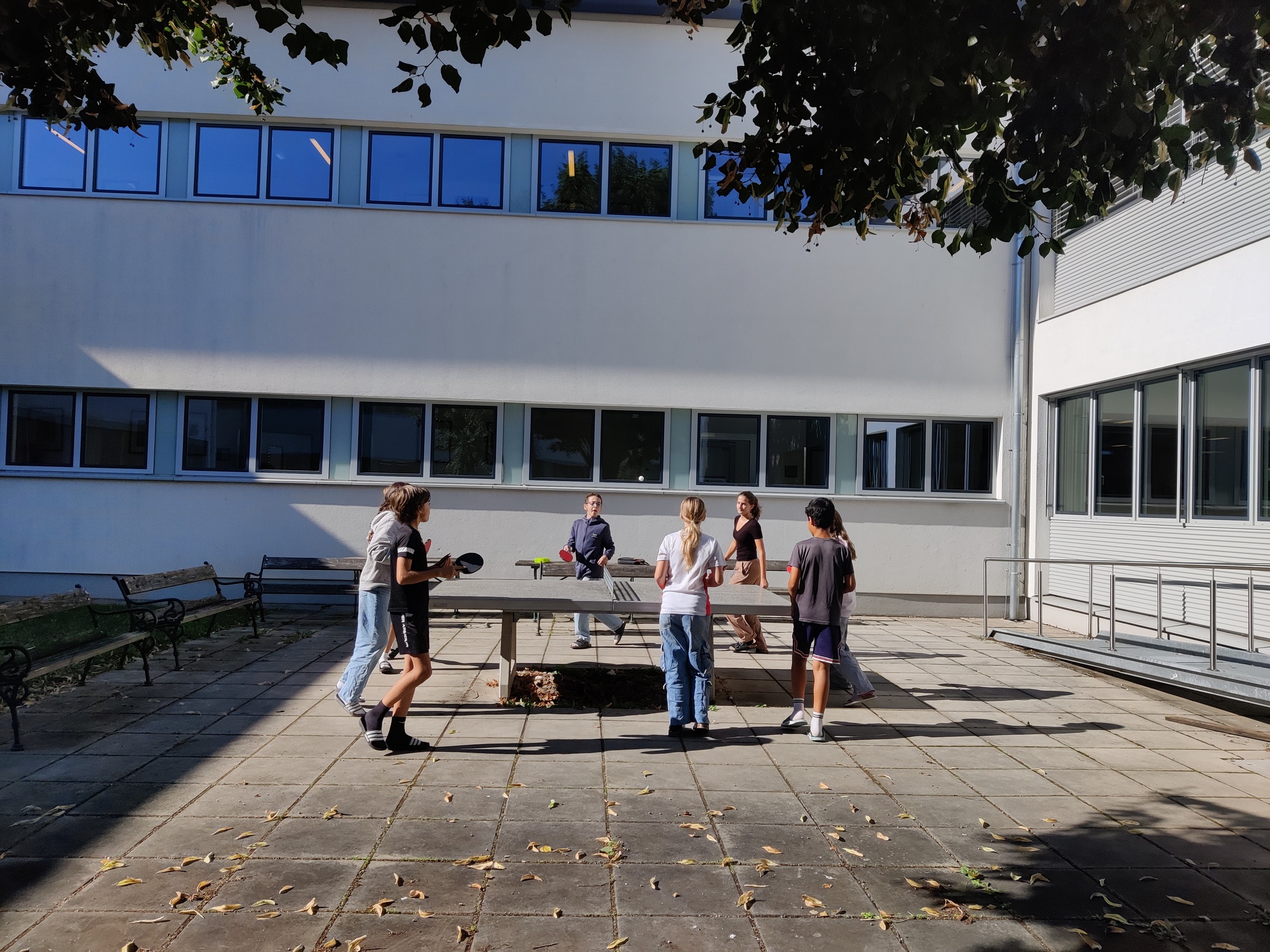 Die Schülerinnen und Schüler danken für die neuen Tischtennisschläger und -bälle – jetzt können die Pausen wieder schwungvoll genutzt werden. Und wie man sieht: Bewegung macht Spaß, und alle dürfen sich beteiligen!