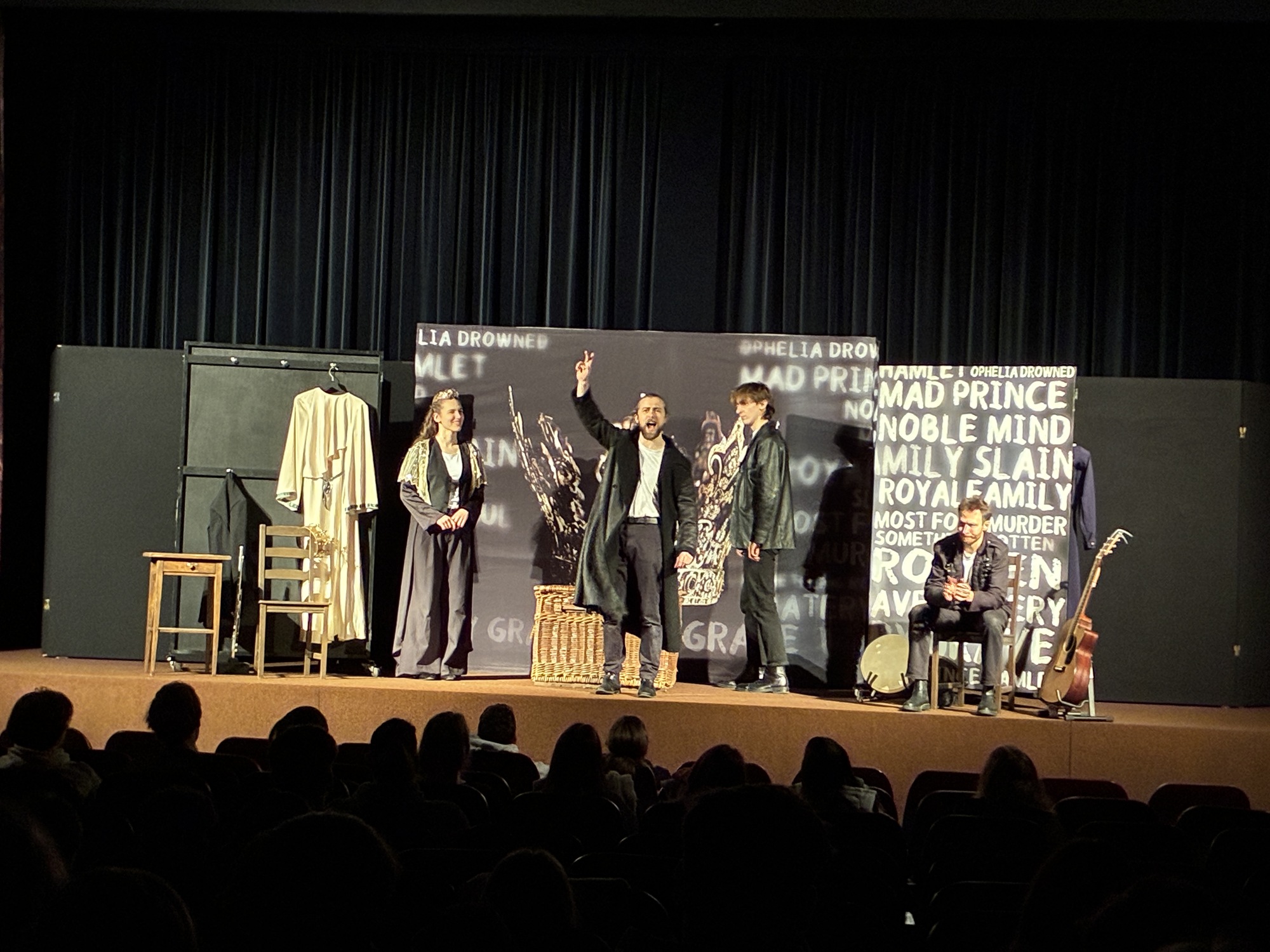 'To be or not to be' war eine der zentralen Fragen im Stück 'Hamlet' von William Shakepeare, das für unsere 7. und 8. Klassen am 11. 12. 2025 von vier Schauspielern des Vienna's English Theatre im Kino Oberpullendorf zur Aufführung gebracht wurde. Auf beeindruckende Weise und mit nur wenigen Requisiten wurden die Charaktere zum Leben erweckt, um dem Publikum tiefe Einblicke in Hamlets Gemütszustand zu geben. In einer Zeit, in der Menschen vermehrt mit psychischen Problemen zu kämpfen haben und oft keinen Ausweg mehr wissen, ist dieses Stück aktueller denn je. Deshalb waren unsere Schüler:innen sowohl von der Tiefe dieser psychologischen Studie als auch von der schauspielerischen Leistung sehr beeindruckt.