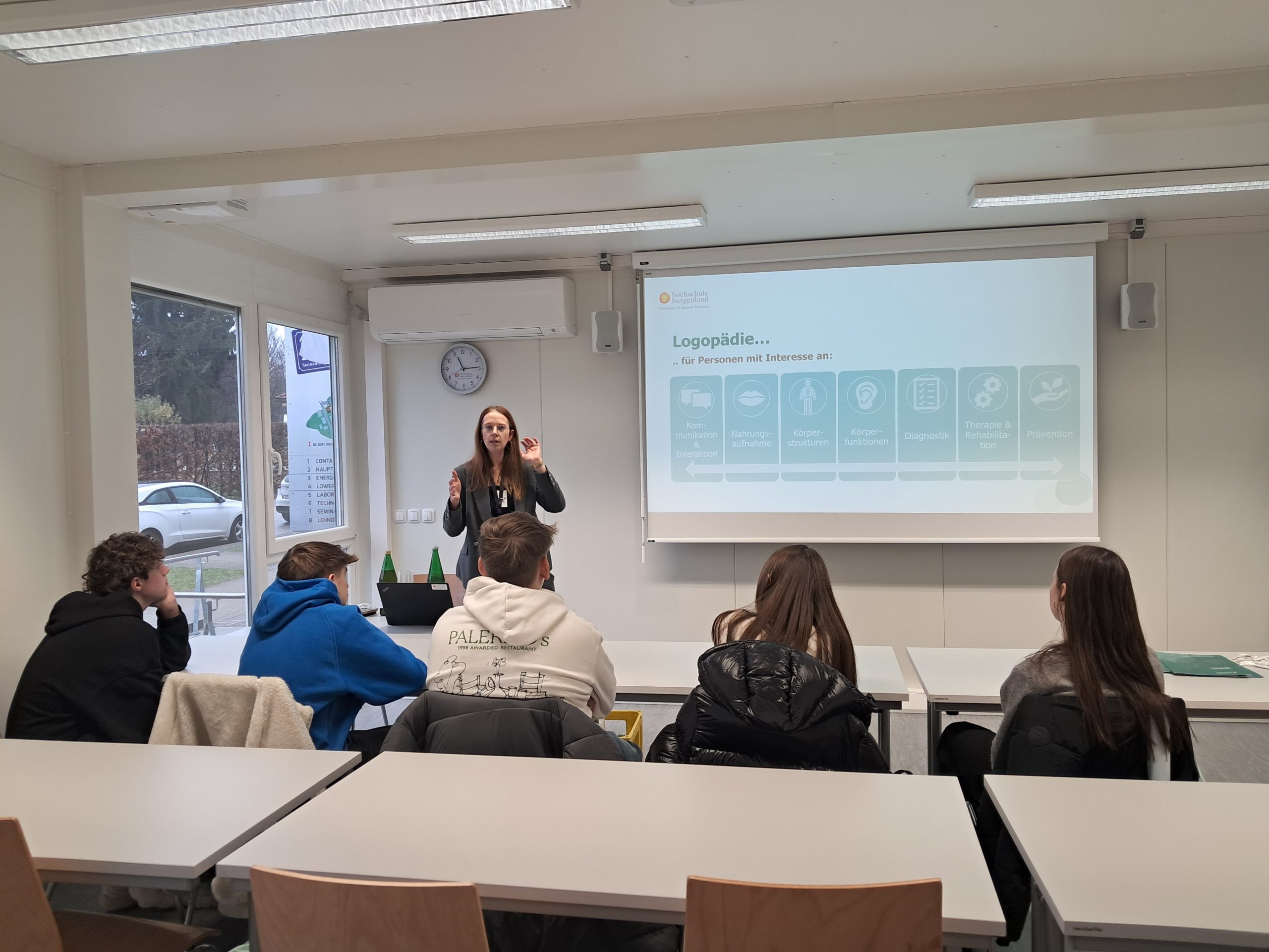 Unter dem Titel „Helden des Alltags" stellten die Studiengänge Physiotherapie, Logopädie und Ergotherapie ihre Berufe vor. Anhand praktischer Übungen wurde gezeigt, wie Menschen im Alltag unterstützt und in ihrer Lebensqualität gestärkt werden. Die Schüler:innen erhielten einen lebendigen Einblick in die vielseitige Therapiewelt.
