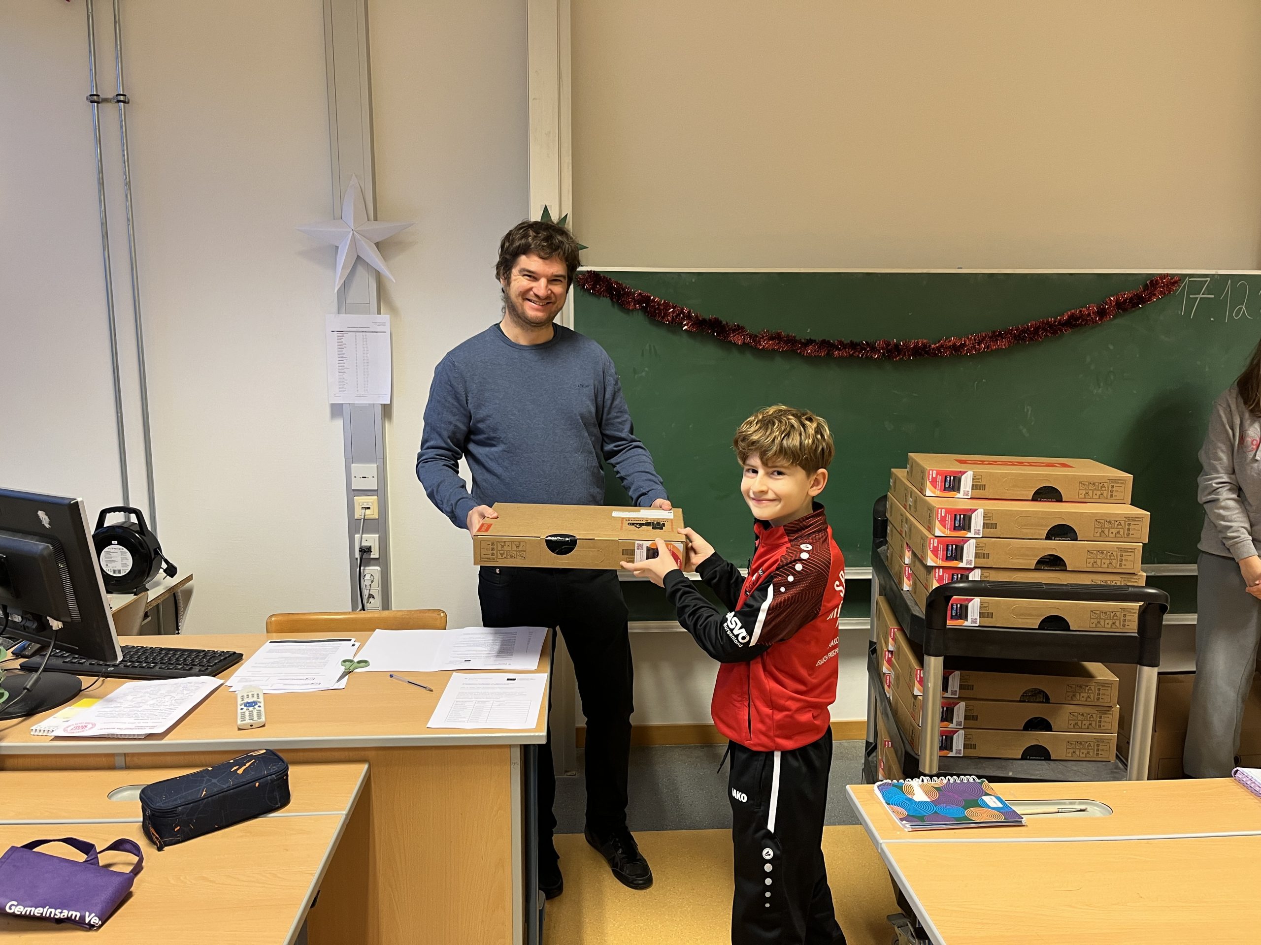 Am 17. Dezember war es soweit: Unsere Schülerinnen und Schüler durften ihre Notebooks aus der Geräteinitiative „Digitales Lernen" entgegennehmen, ein vorzeitiges Weihnachtsgeschenk, über das sich alle sehr gefreut haben!